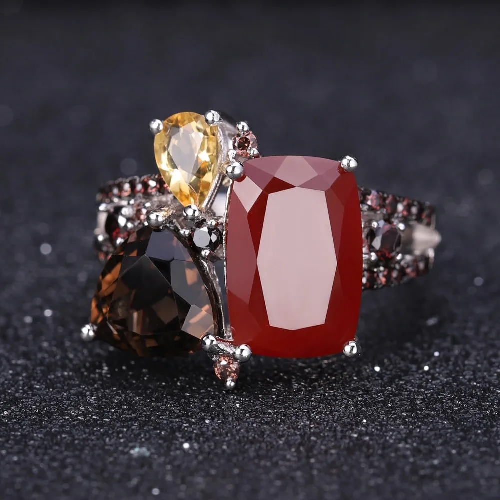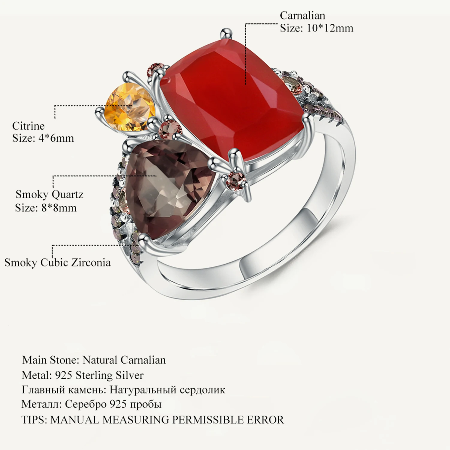 Женское кольцо с натуральным сердоликом, винтажное Ювелирное Украшение ручной работы из стерлингового серебра 925 пробы с геометрическим дизайном