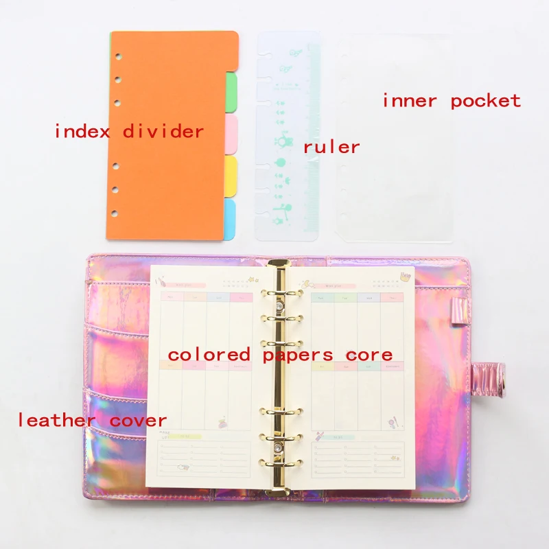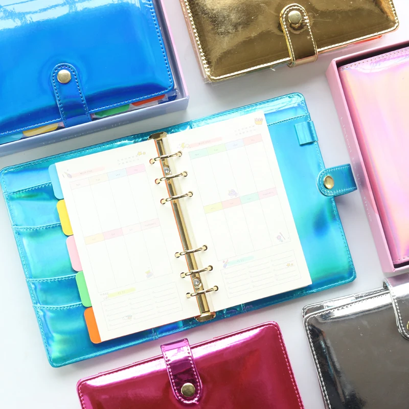 Domikee творческий милый лазерный кожаный твердый переплет 6 связующее кольцо спиральный планер Органайзер блокноты канцелярские товары A6