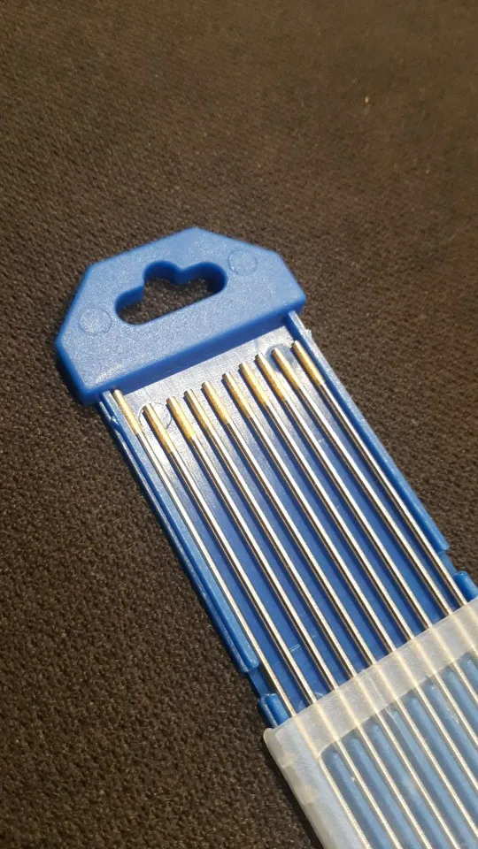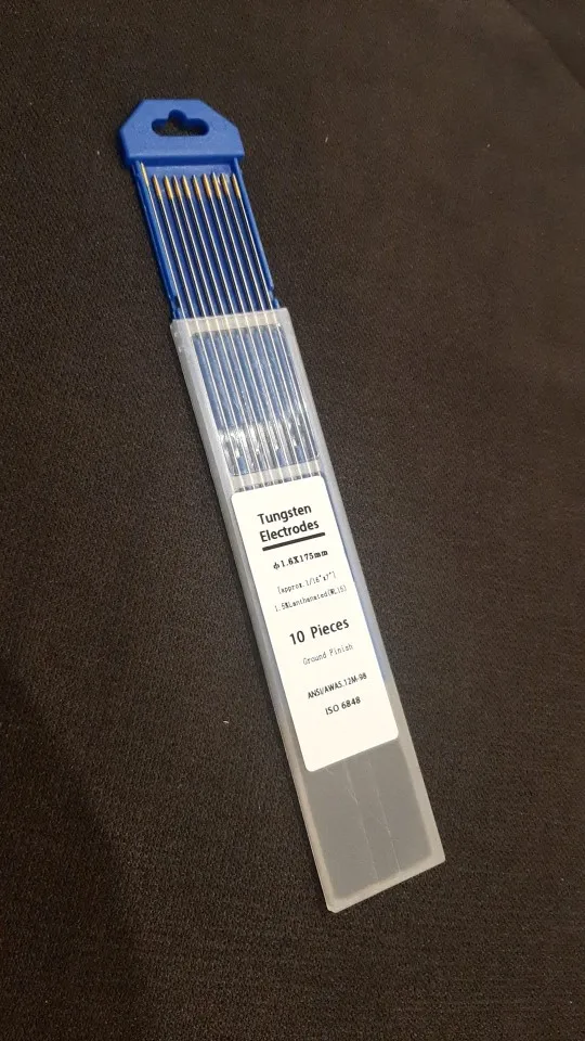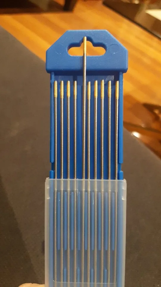Лантанированный Вольфрам (Золотая головка), подходит для сварки переменного или постоянного тока (сварной алюминий, магний, сплавы и еще одно преимущество Lanthanated Tungsten способны выдерживать высокий ток и иметь самый низкий уровень ожога-потери)