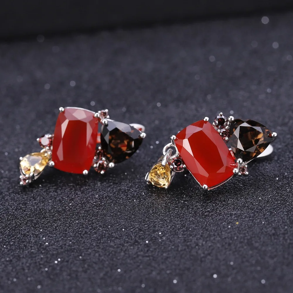 Женские серьги-гвоздики ручной работы GEM'S BALLET, современные прямоугольные серьги с сердоликом, ювелирное изделие из стерлингового серебра 925 пробы