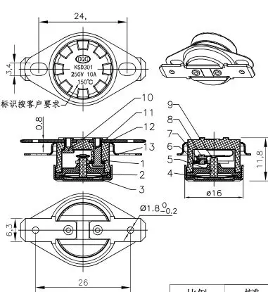 Термостат керамический KSD302KSD301 160C 165C 170C 175C 180C 185C 190C 195 200C 210C 220C 230C 240C градусов 10A нормально закрытый