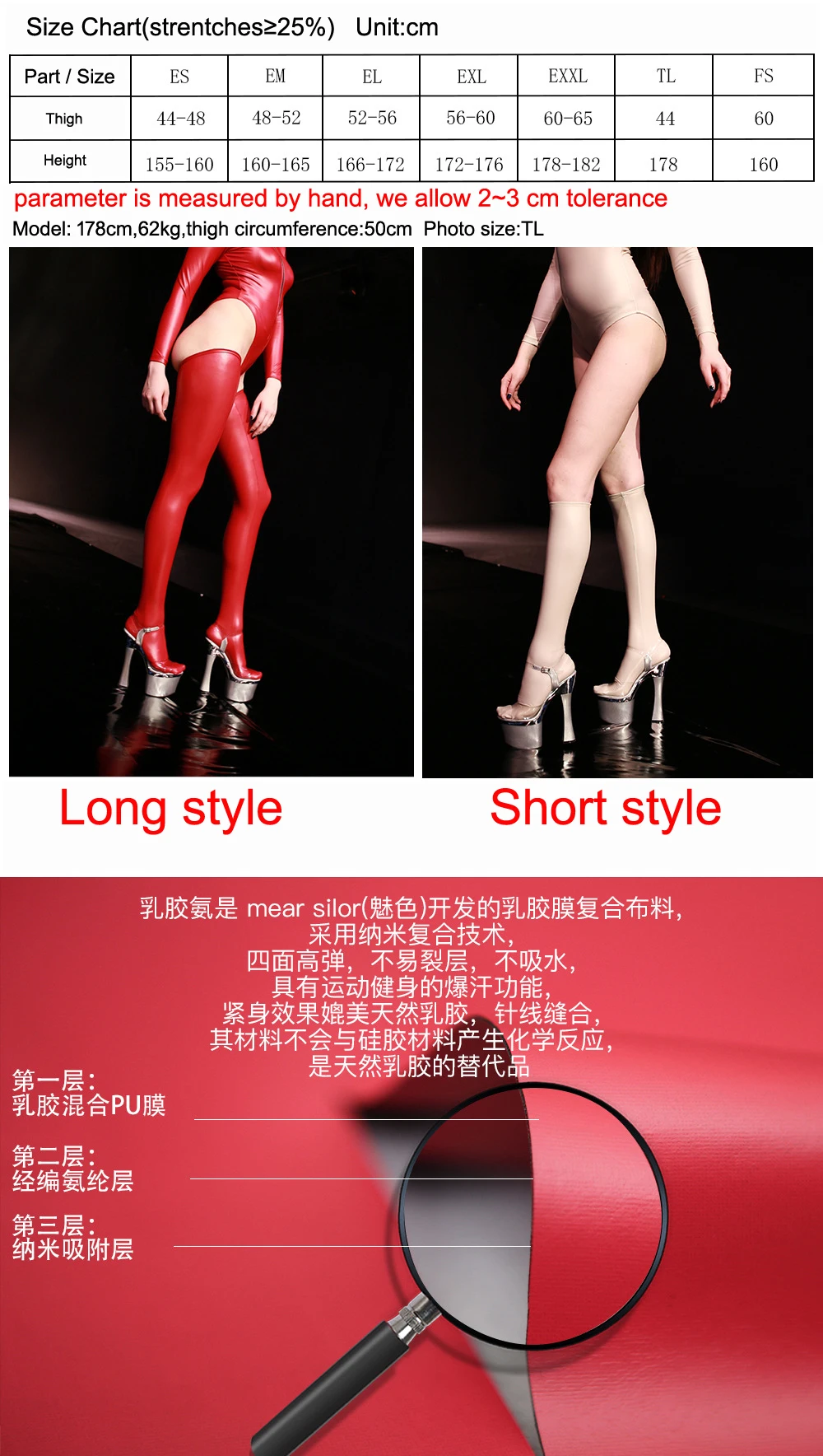 Размера плюс сексуальные чулки до бедра, черные чулки из мокрого материала, кожаные латексные чулки, выше колена