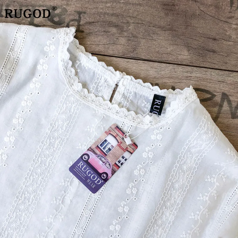 RUGOD, Корейская элегантная женская блузка с цветочным принтом, винтажные рукава-фонарики, кружевные белые милые женские рубашки, повседневные женские Топы modis