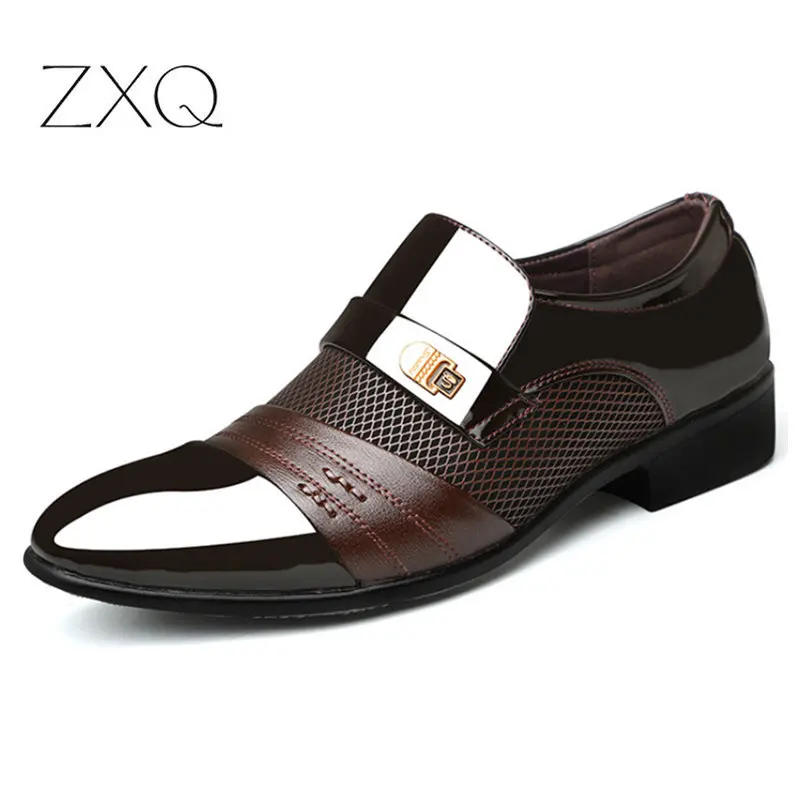 Мужские классические туфли, деловые туфли на плоской подошве, дышащие, без застежки, цвет черныйкоричневый, лето