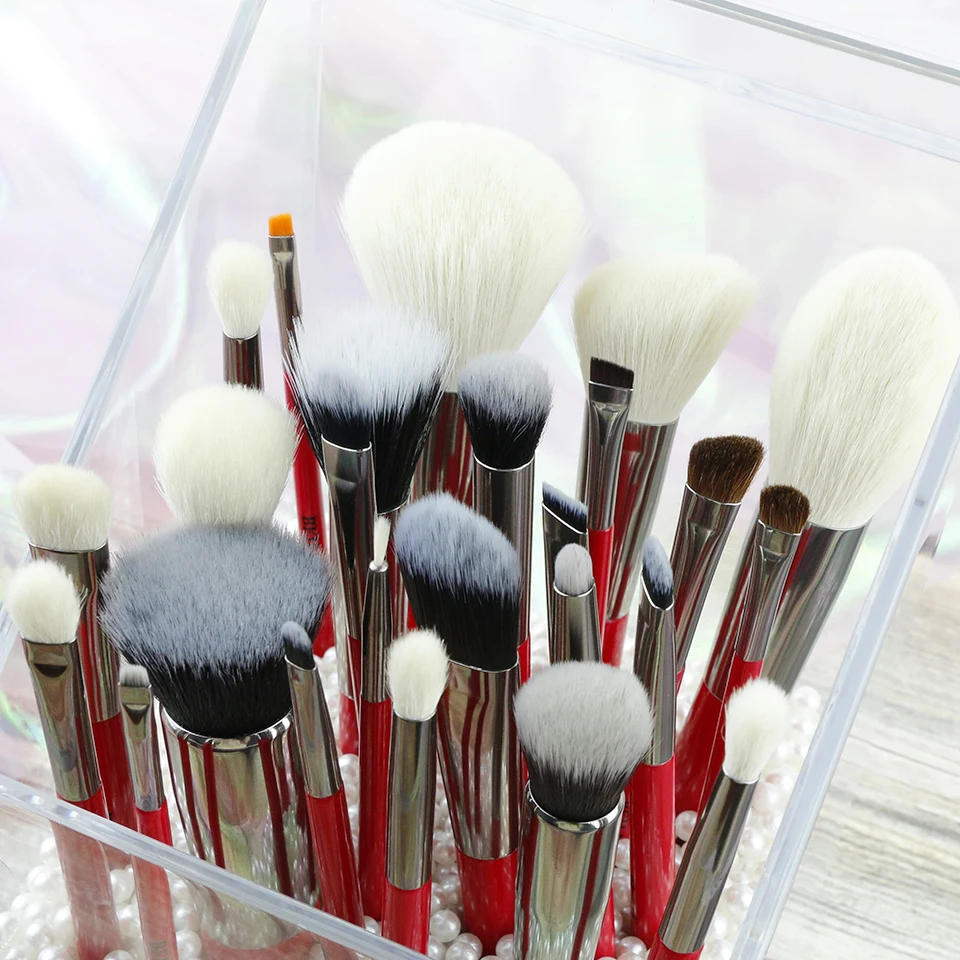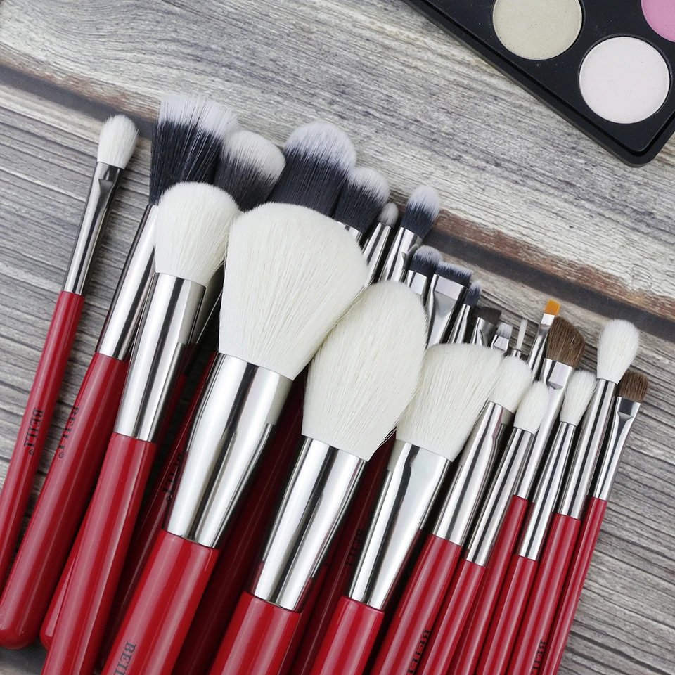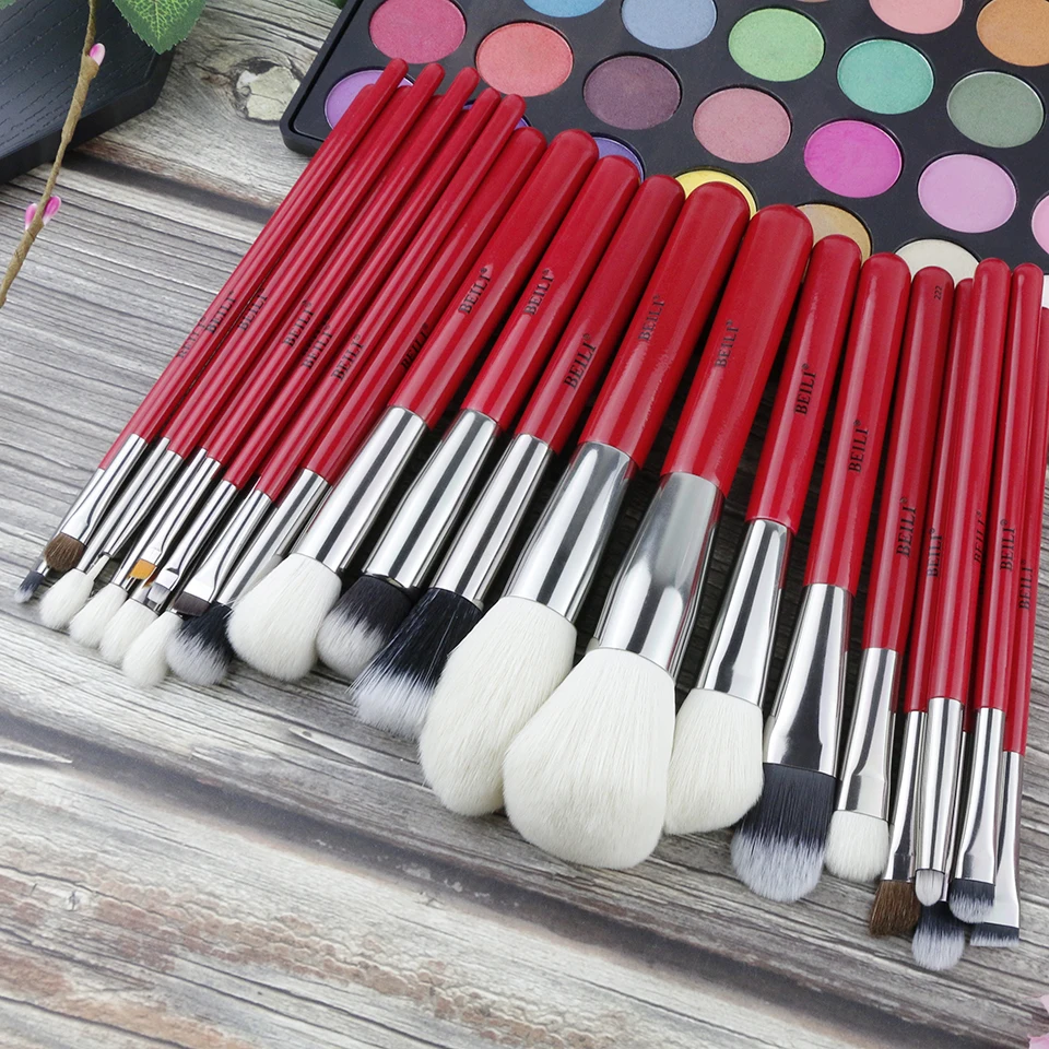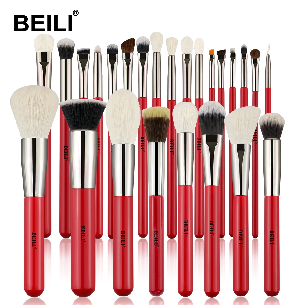 BEILI Красный Профессиональный набор кистей для макияжа козья синтетическая шерсть тени для век Пудра кисти для макияжа Инструменты для смешивания кисти для макияжа
