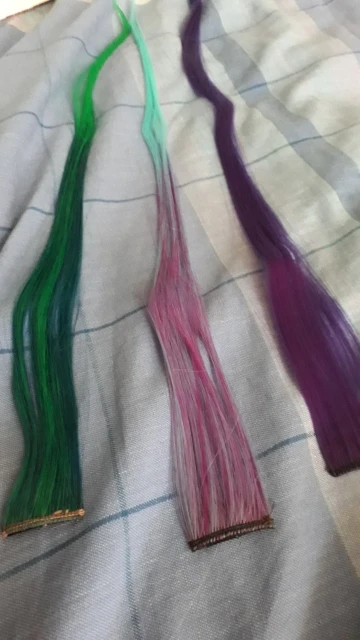 Вместо сиреневого, пришли розовые. Но всё равно все цвета яркие и очень классные. К покупке рекомендую, продавец отправил очень быстро. Пришло соответственно тоже быстро))) если хотите обновить имидж, но не хотите красить волосы, то эти волосюшки для вас)))