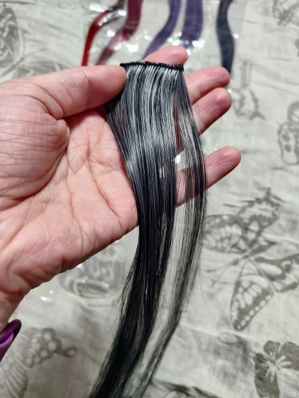 Заказывала 6 штук, все пришли. Покупала для племянниц и себе взяла две штуки попробовать) Если правильно приколоть, чтобы скрыть, где приколота прядь, то выглядит неплохо. Но так как волосы у меня кучерявые, а купленные пряди прямые выглядит не очень - нужно попробовать закрутить. Для образа или на каждый день - прикольный вариан, чтобы не красить волосы) Товар отправили быстро, в Киев пришло за 3,5 недели.