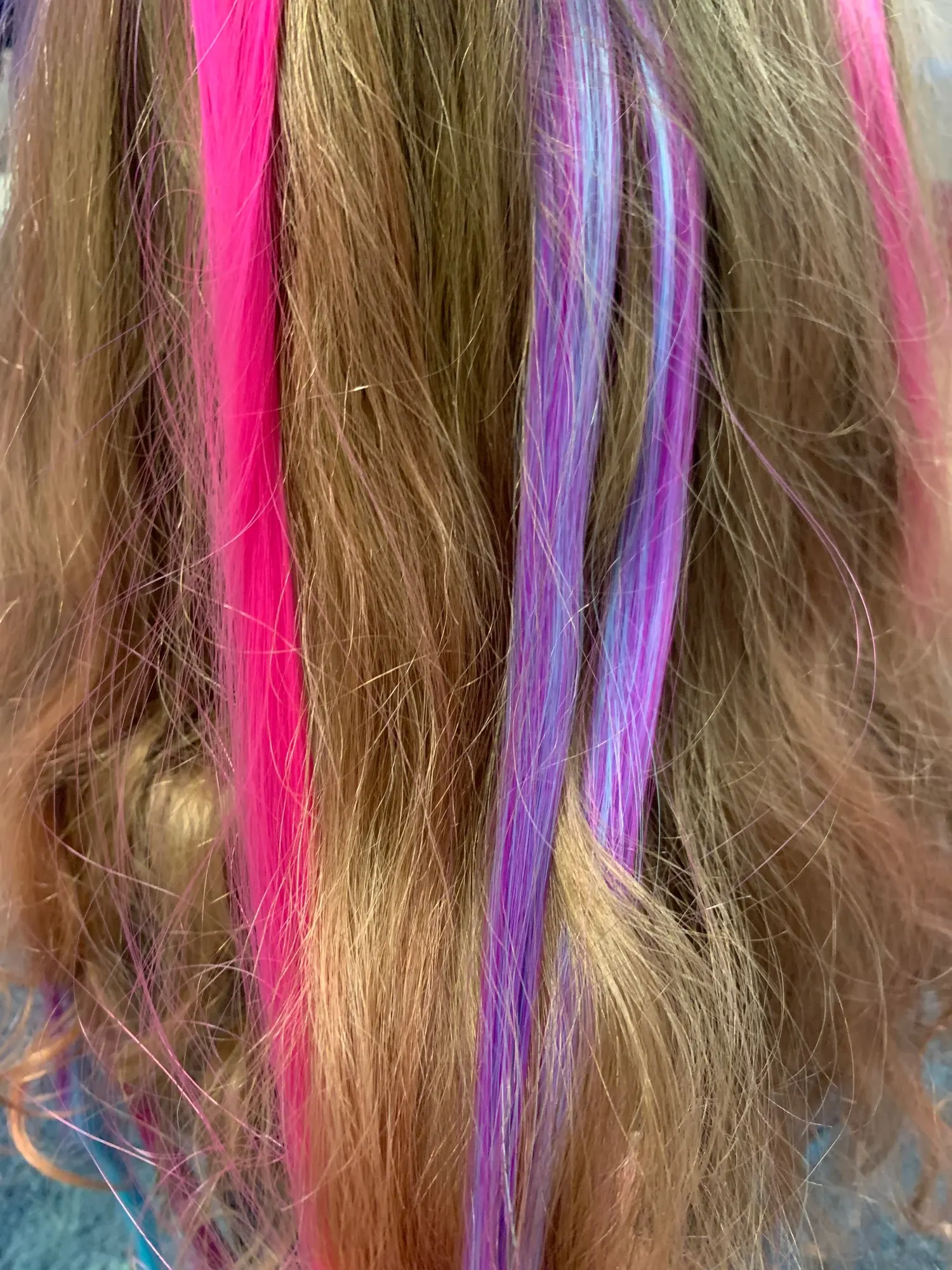 Яркие пряди, дочке моей 8 лет, она в восторге