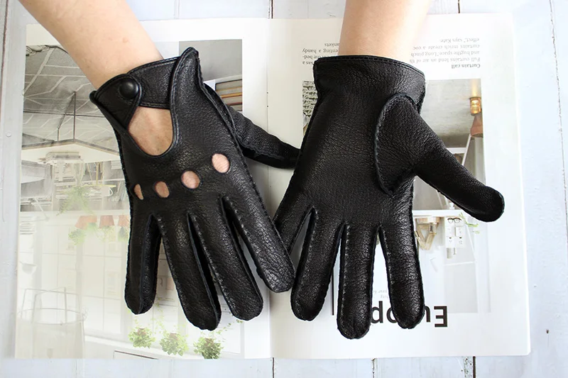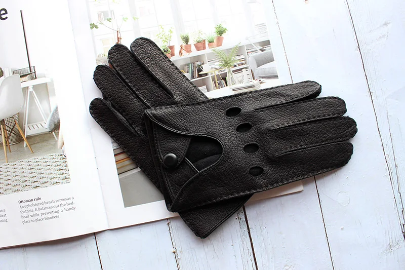 Перчатки мужские из оленьей кожи, без подкладки, тонкие, дышащие, весна-осень