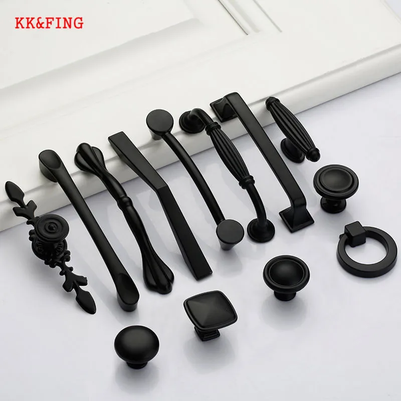 KK FING современные черные ручки шкафа из твердого алюминиевого сплава кухонные ручки для выдвижных ящиков оборудование для обработки мебели