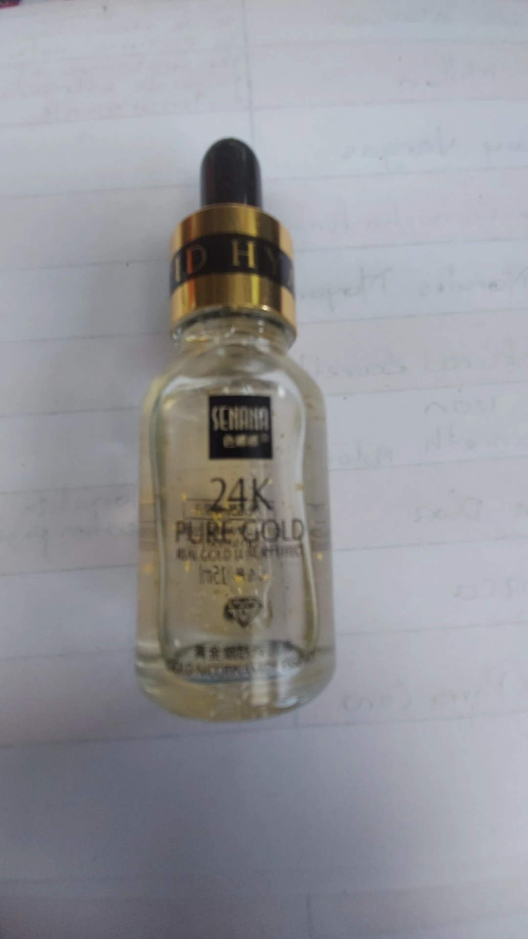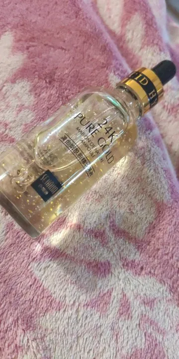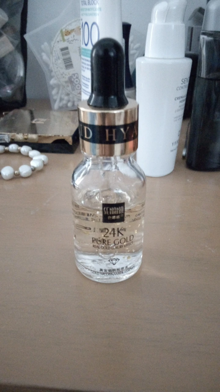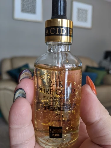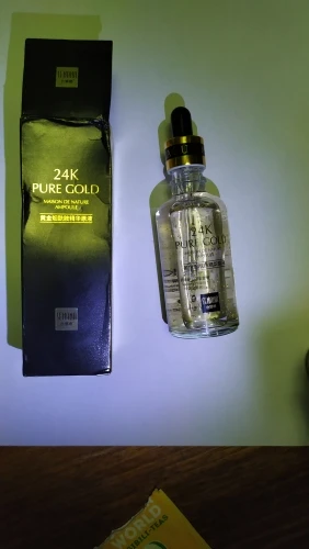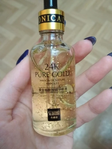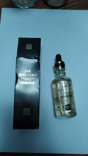 Точно так же, как описано поставщиком. Сыворотка имеет очень приятный запах и текстуру. Освежающий кожу при нанесении, вы можете увидеть Мелкие золотые частицы. Быстро впитывается. Продукт легкий и придает коже освежающий блеск. Я не был в состоянии проверить продукт на эффективность с течением времени, потому что я только что получил его сегодня. Но я могу оставить второй отзыв позже. Доволен качеством. Спасибо продавцу.