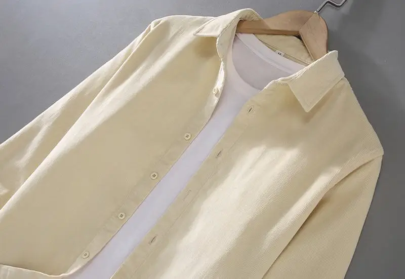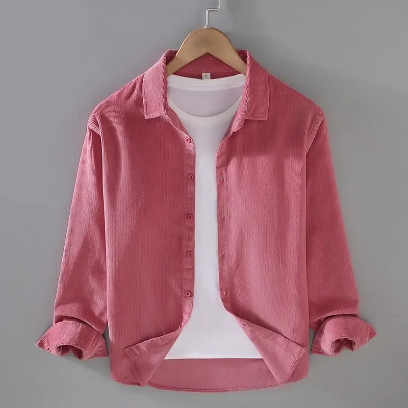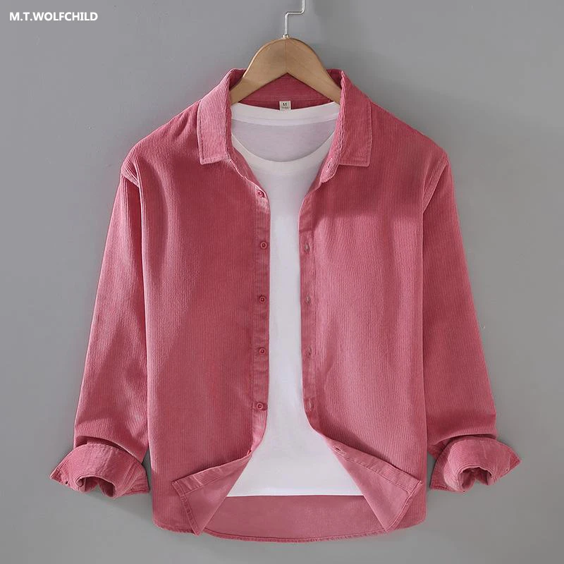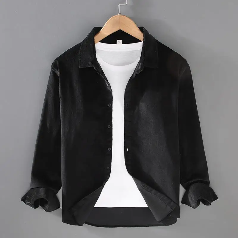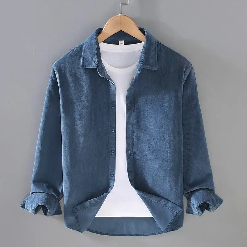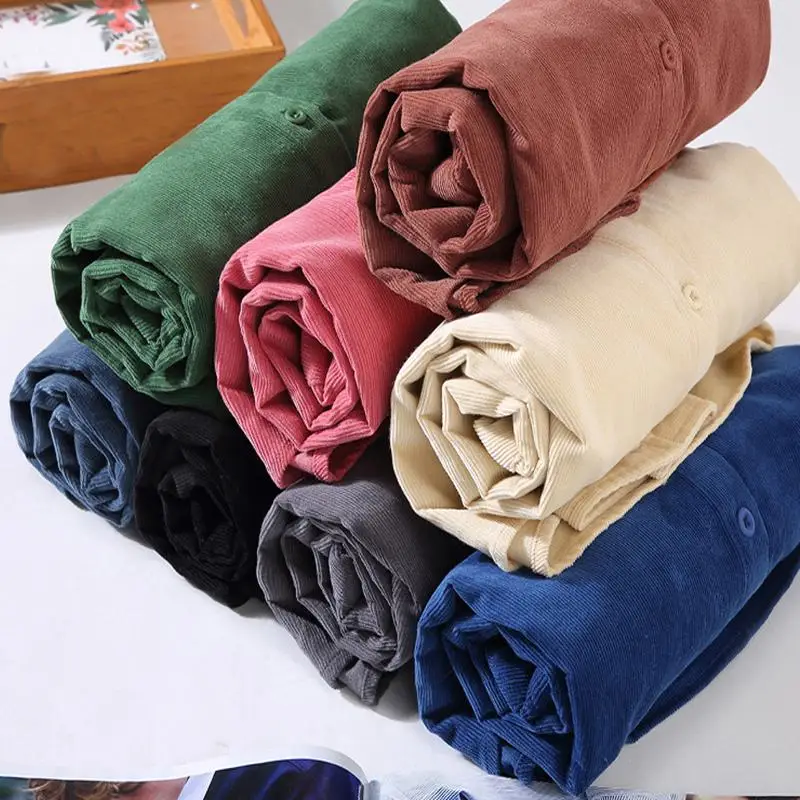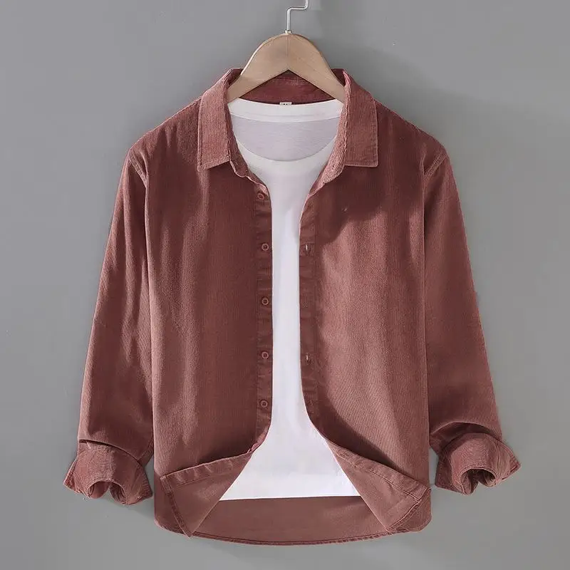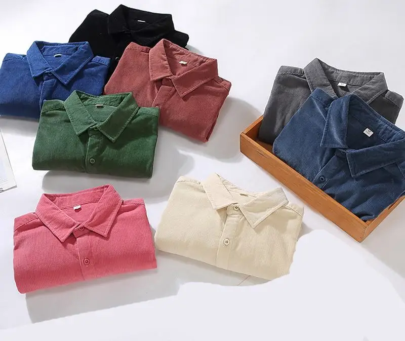 Мужская рубашка из 100% хлопка, Осень-зима, ретро, однотонные мужские повседневные рубашки, Вельветовая Мужская блузка, модная одежда, топы