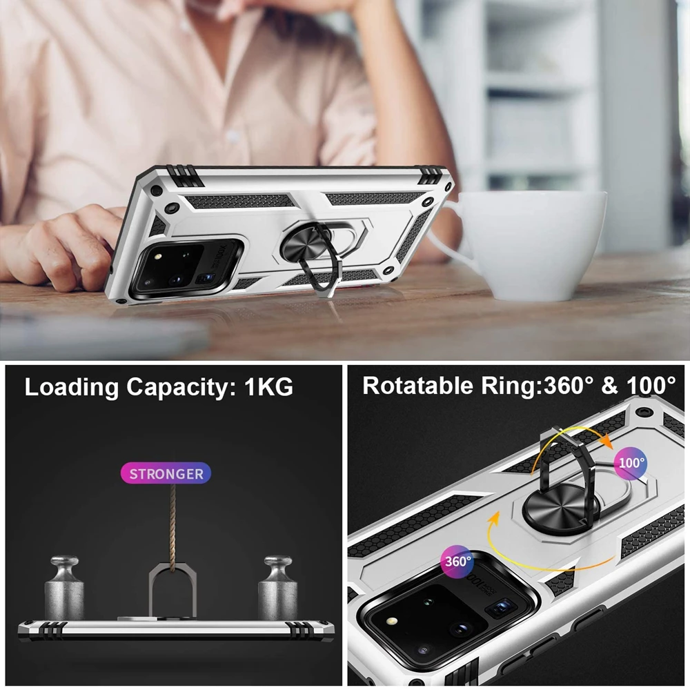 Противоударный армированный чехол с подставкой для Samsung Galaxy Note 10 Lite S8 S9 S10 E 5G S20 Plus Ultra, Магнитный чехол с кольцом-держателем на палец
