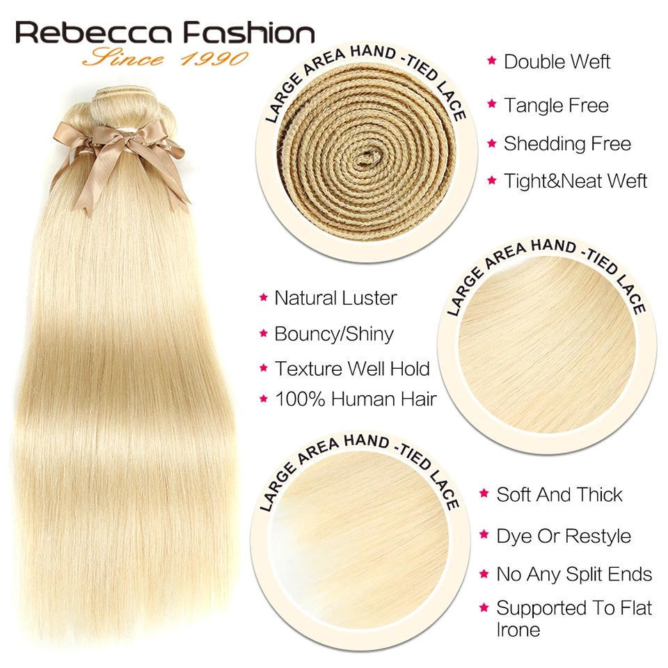 Пряди блонд Rebecca 613 с фронтальной частью пряди натуральных волос Блонд перуанские прямые волосы 3 пряди с фронтальной застежкой