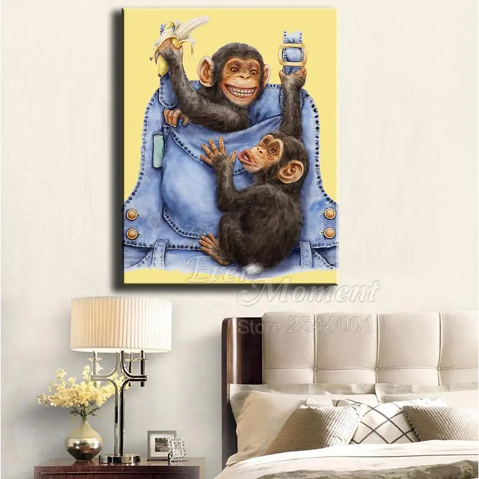Алмазная живопись с Обезьянами, ручная работа, полная выкладка, карманная картина Стразы, домашняя Алмазная вышивка, ASF1500