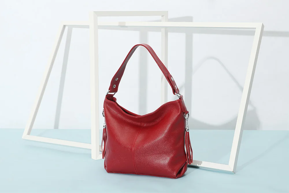 Женская сумка-хобо из натуральной кожи с кисточками