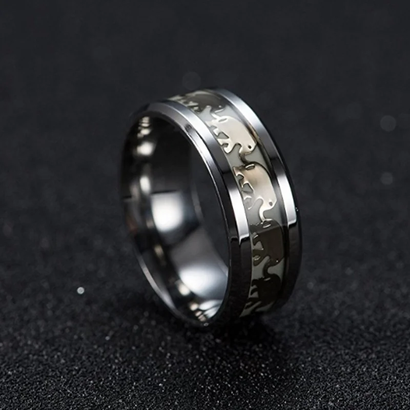 Кольцо со светящимся слоном в стиле ретро мужское и женское, из нержавеющей стали с узором в виде животных, в богемном стиле, ФЛУОРЕСЦЕНТНОЕ вечервечерние Ювелирное Украшение