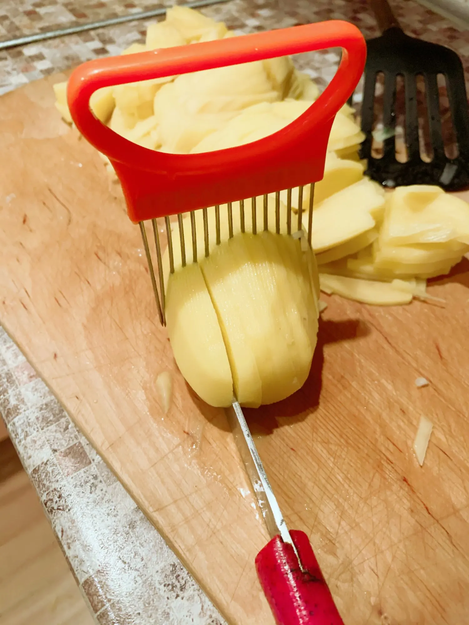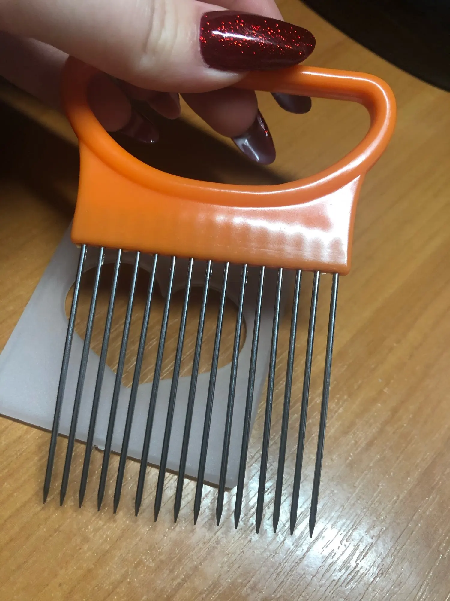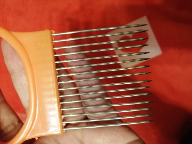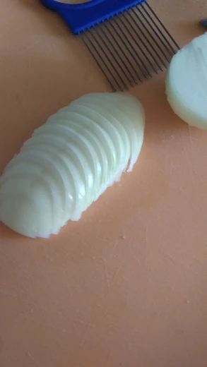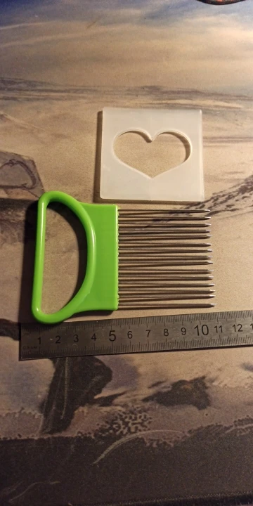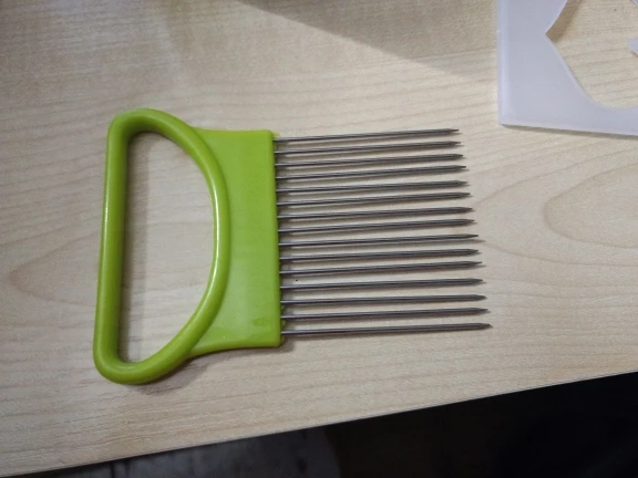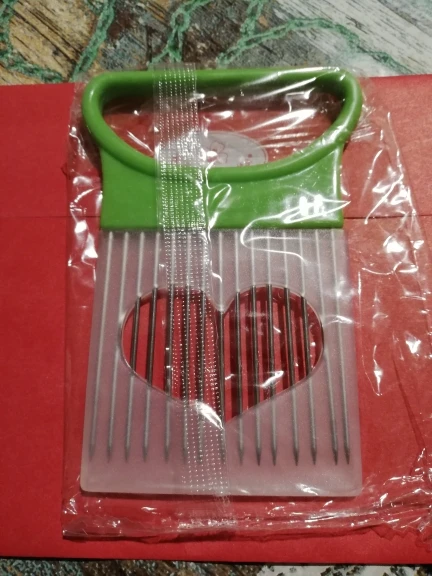 Кто может быть интересен, этот продукт супер, при нарезании томатного лука или чего-то похожего, 99.9% риск травм снижается случайно при резке, единственное, что я предупреждаю, это то, что нарезанный в луке, выходит немного толстым, но это супер.