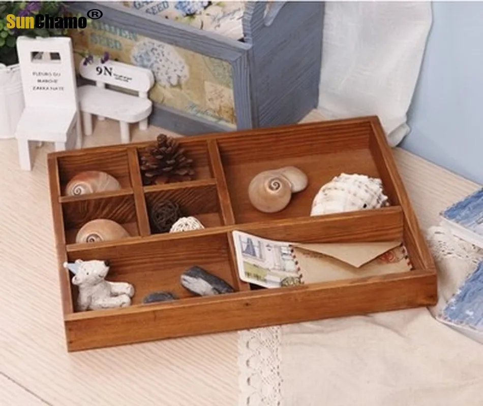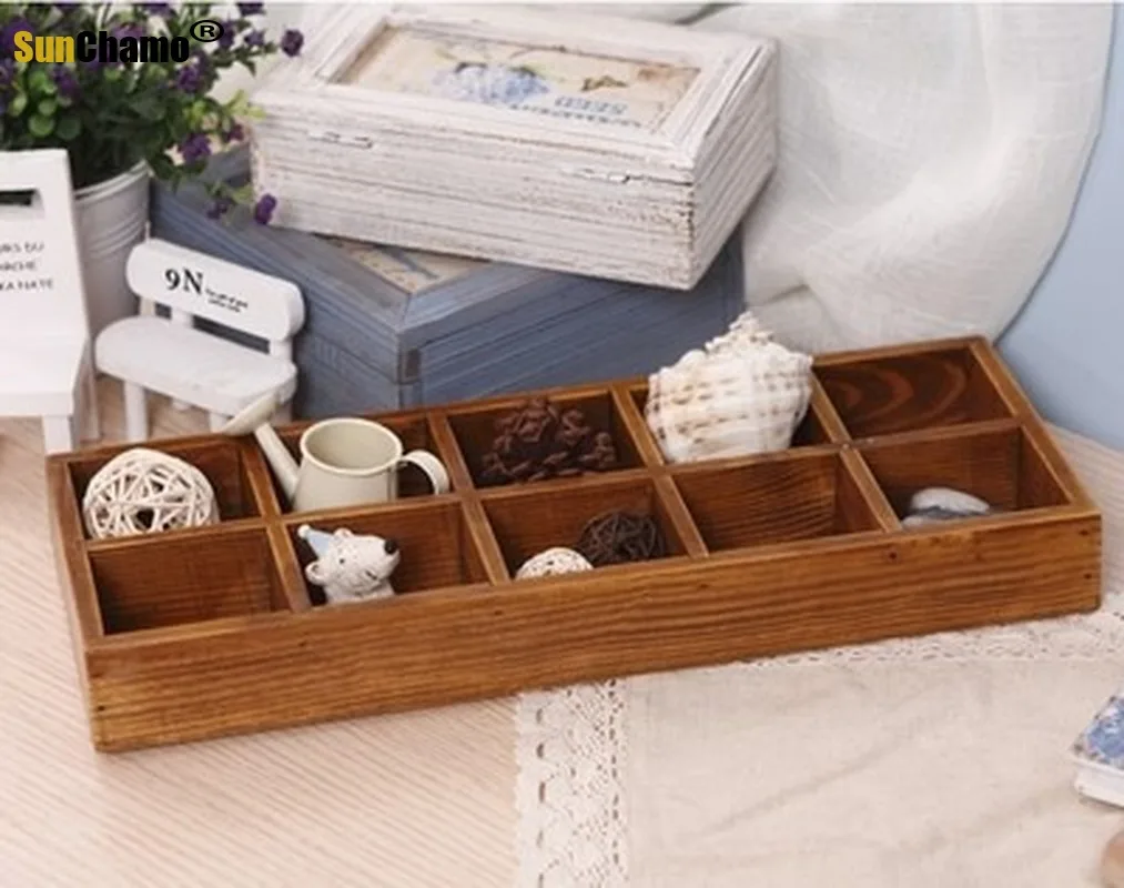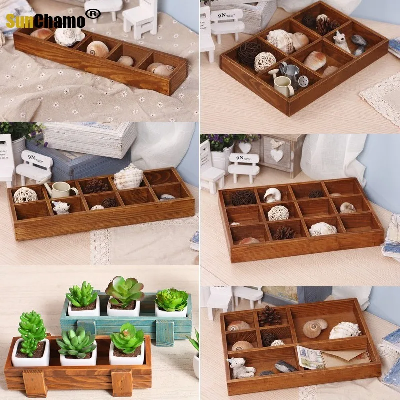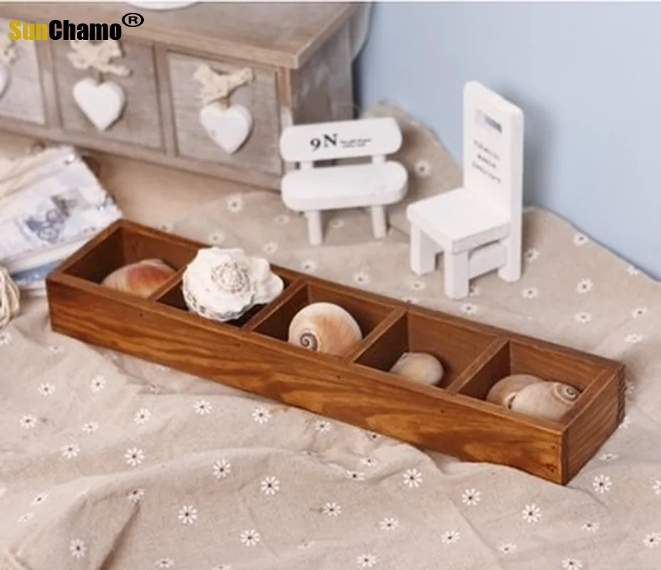 Горшок для растений с 5 ячейками, декоративный винтажный деревянный ящик для суккулентов, прямоугольный Настольный цветочный горшок, садовая коробка