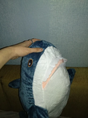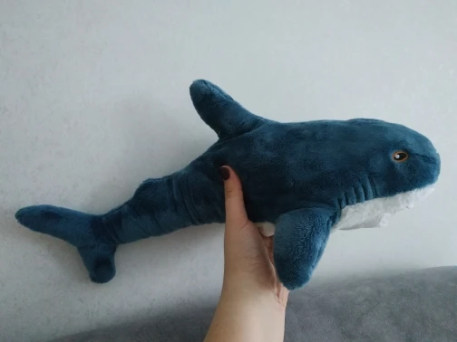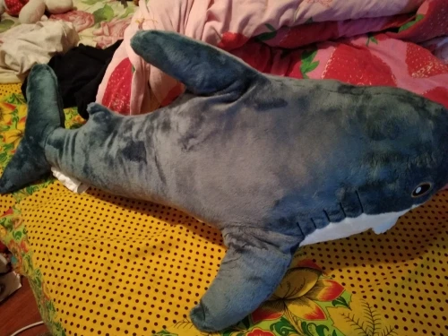 Прекрасная рыбка! Доехала быстро. Недели за две с половиной. Упаковка - обычный почтовый пакет. Брала за 645 рублей 80 см. Большая, пышная. Очень мягкая. По дороге встретилась с другими посылками. Всё великолепно! Распрямилась сразу. Наполнение вполне достаточное. Спасибо продавцу.