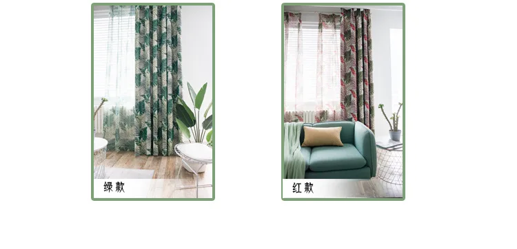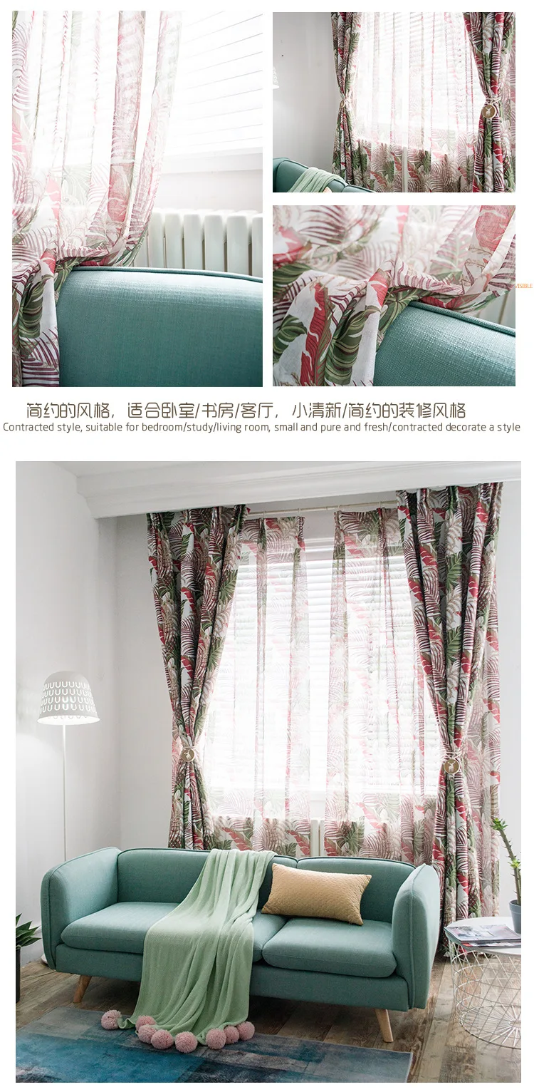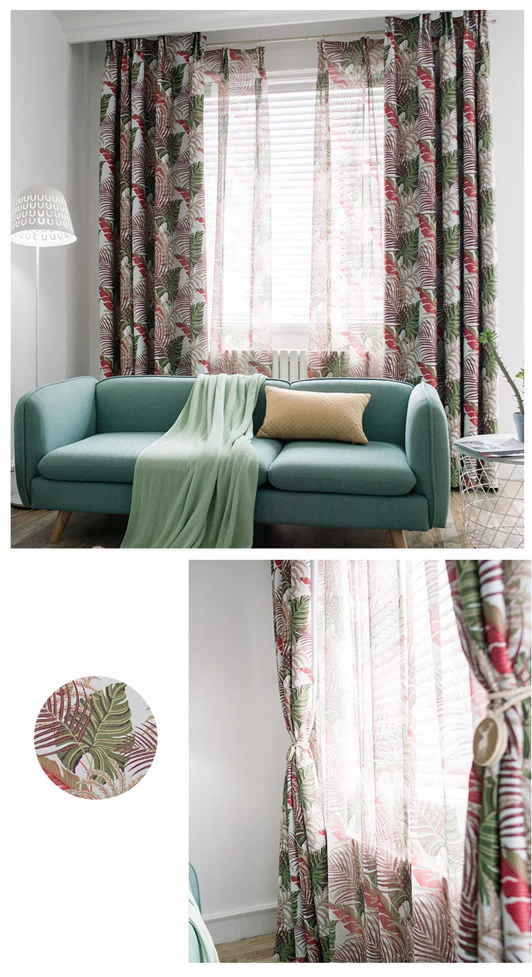 Затемненные шторы с тропическим принтом для гостиной, зеленые листья, пальма, тюль, вуаль, лайнер, оконные шторы для спальни