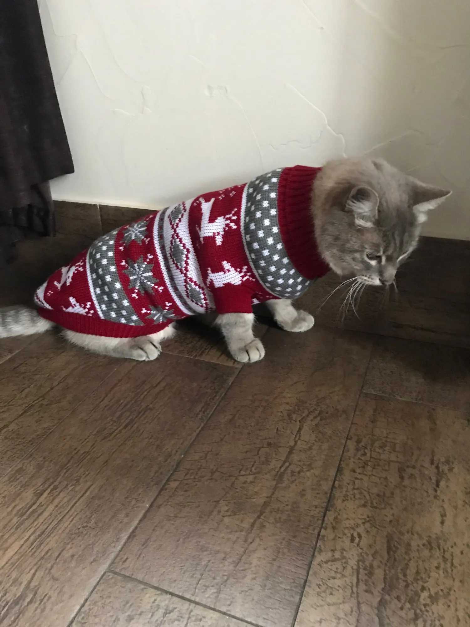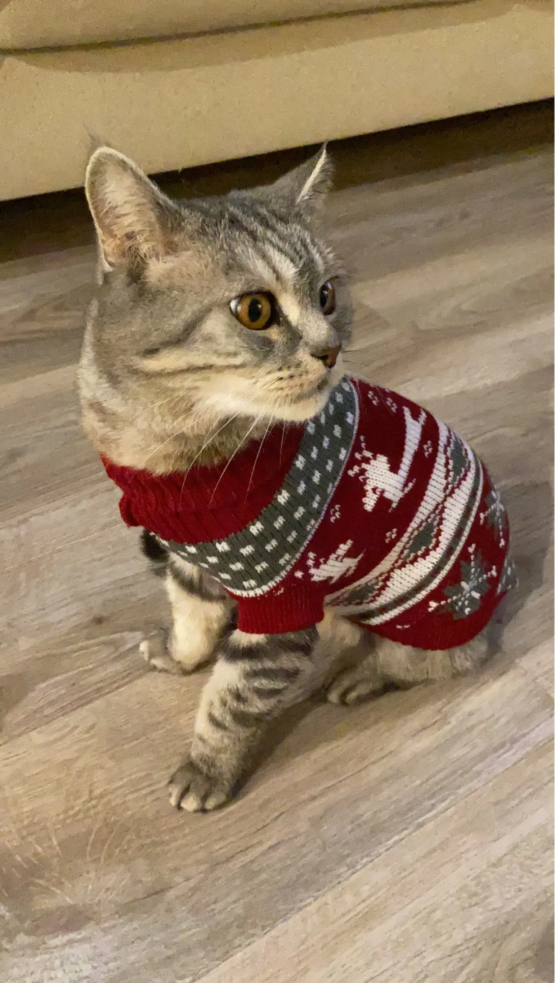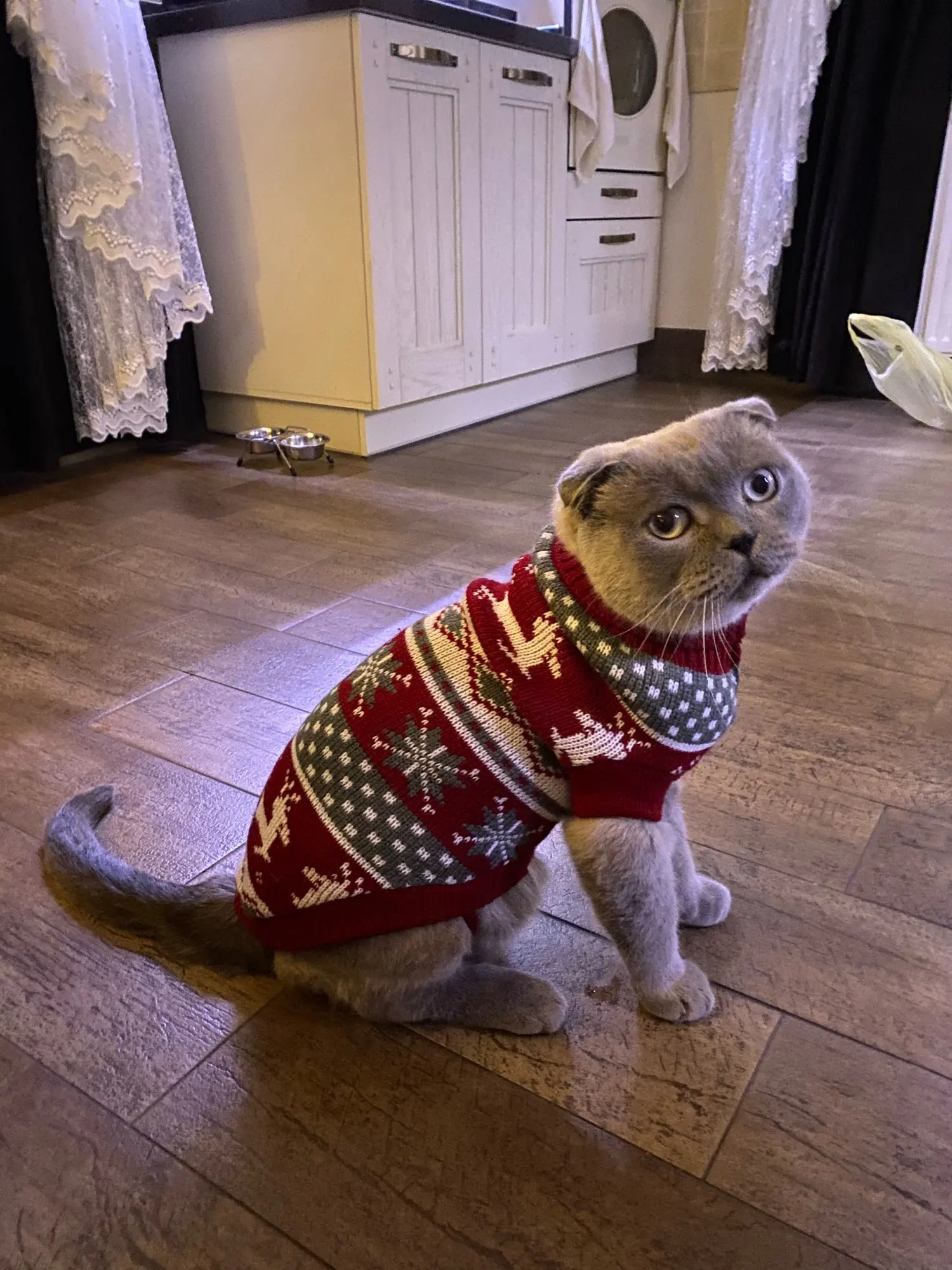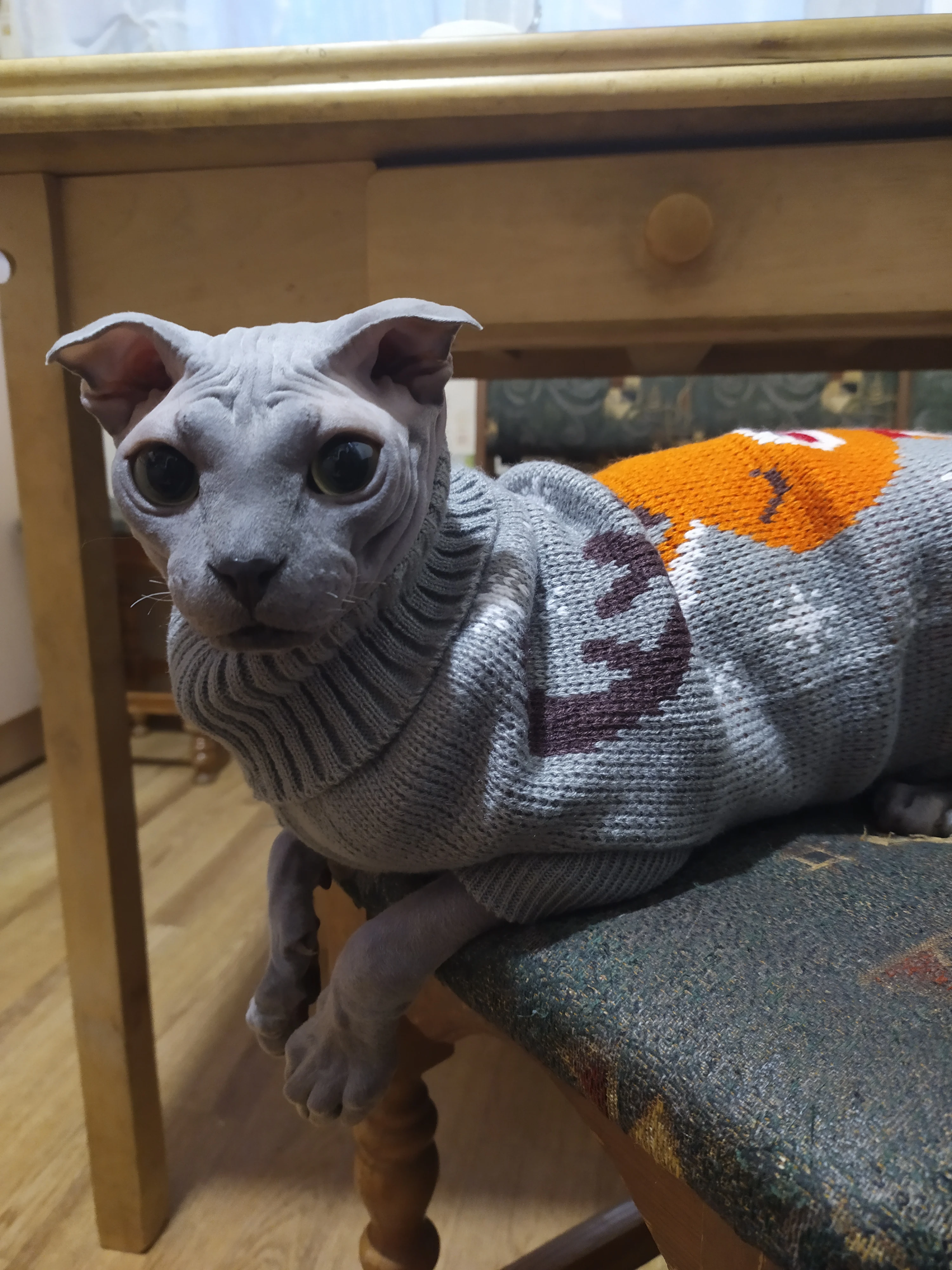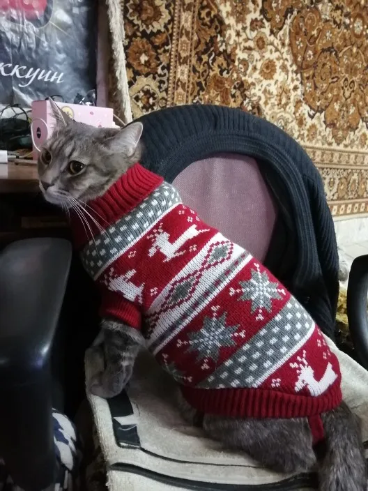 Неплохой свитер, но очень долгая доставка, заказала с расчетом, что придёт к новому году, а пришло только через 3-4 месяца.Коту в свитере неудобно, но я покупала как наряд для фото, поэтому вполне ничего. Размерная сетка соответствует.