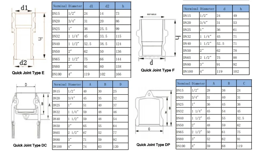 12 "до 4" Тип D + F Camlock Соединительный адаптер из нержавеющей стали SS304 кулачок и паз фитинг