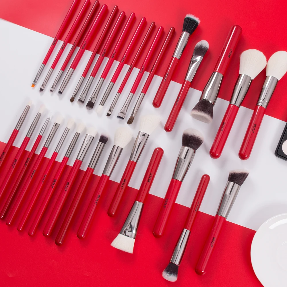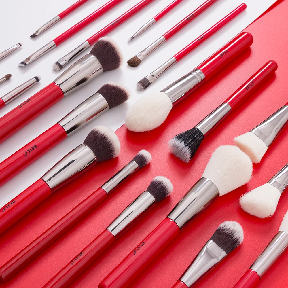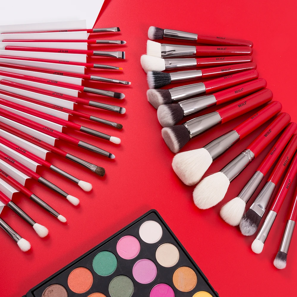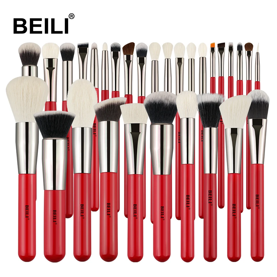 Набор кистей для макияжа с красными глазами BEILI, профессиональные натуральные волосы, тени для век, пудра, румяна, маркер, набор кистей, инструмент для макияжа
