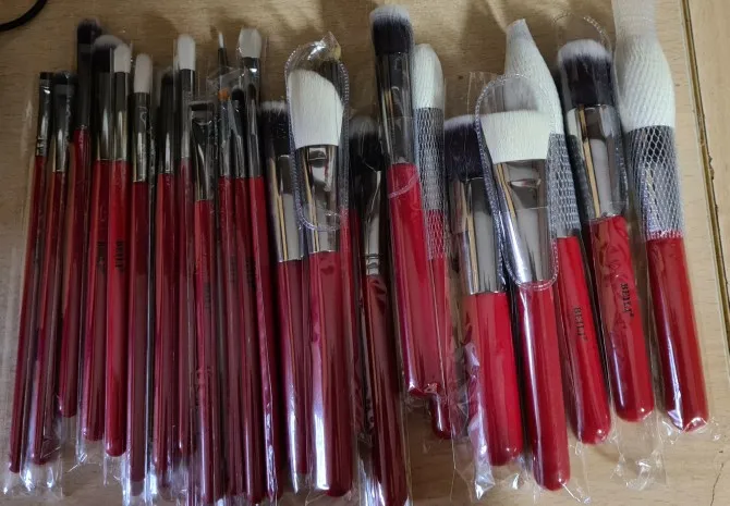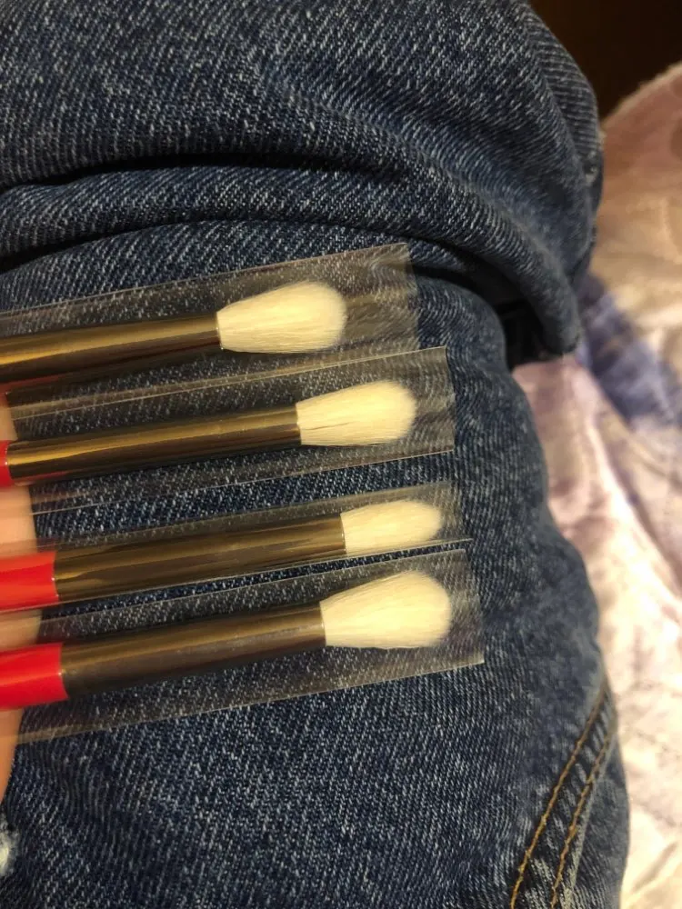 Формы кистей классные, ворс хороший за такую цену. Но был сильный запах клея, уже выветрился. На всякий случай обработала специальными антибактериальными салфетками для очистки кистей. Кстати, из кисти для губ вылез весь ворс в первое же применение.
