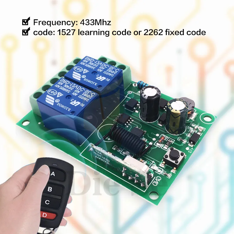 433 МГц универсальный переключатель дистанционного управления AC 110 V 220 V 10A 2CH rf релейный приемник и передатчик для гаража и пульт управления воротами