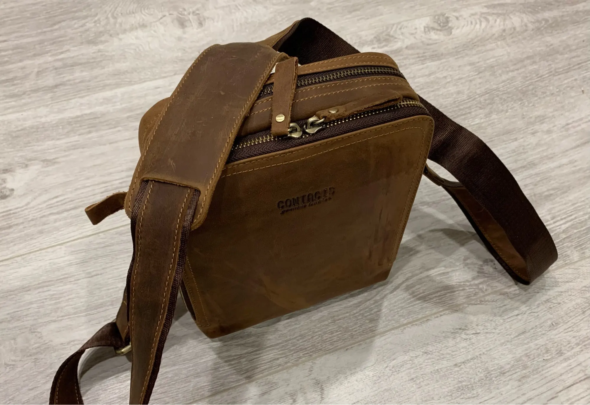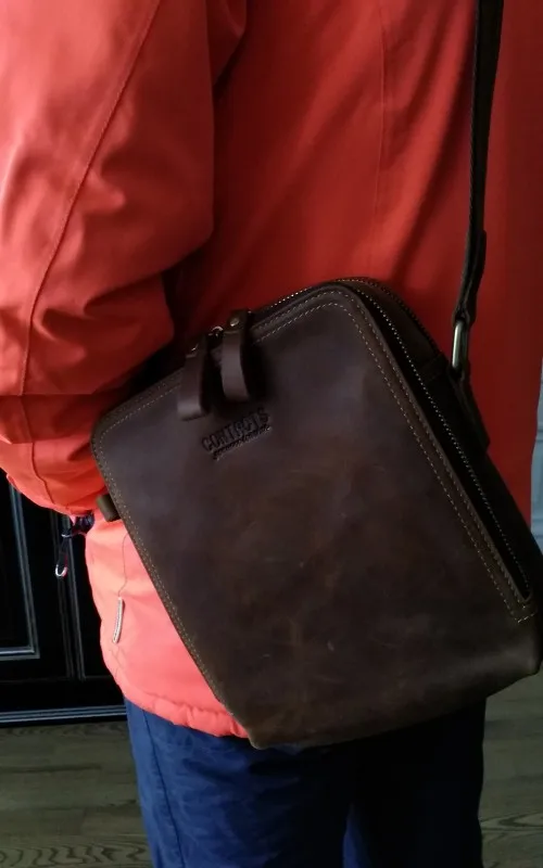 Сумочка мужу понравилась. Спасибо за быструю доставку. Описание точное, как на картинке. заказали кожу крейзи хёрс коричневого цвета, присутствует небольшой запах краски - не выченки. Товар и продавца рекомендуем.