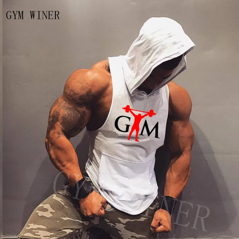 Брендовые топы для мужчин, бодибилдинг, хлопковый топ на бретелях, тренажерные залы, фитнес, жилет с капюшоном, без рукавов, толстовка, Повседневная модная одежда для тренировок