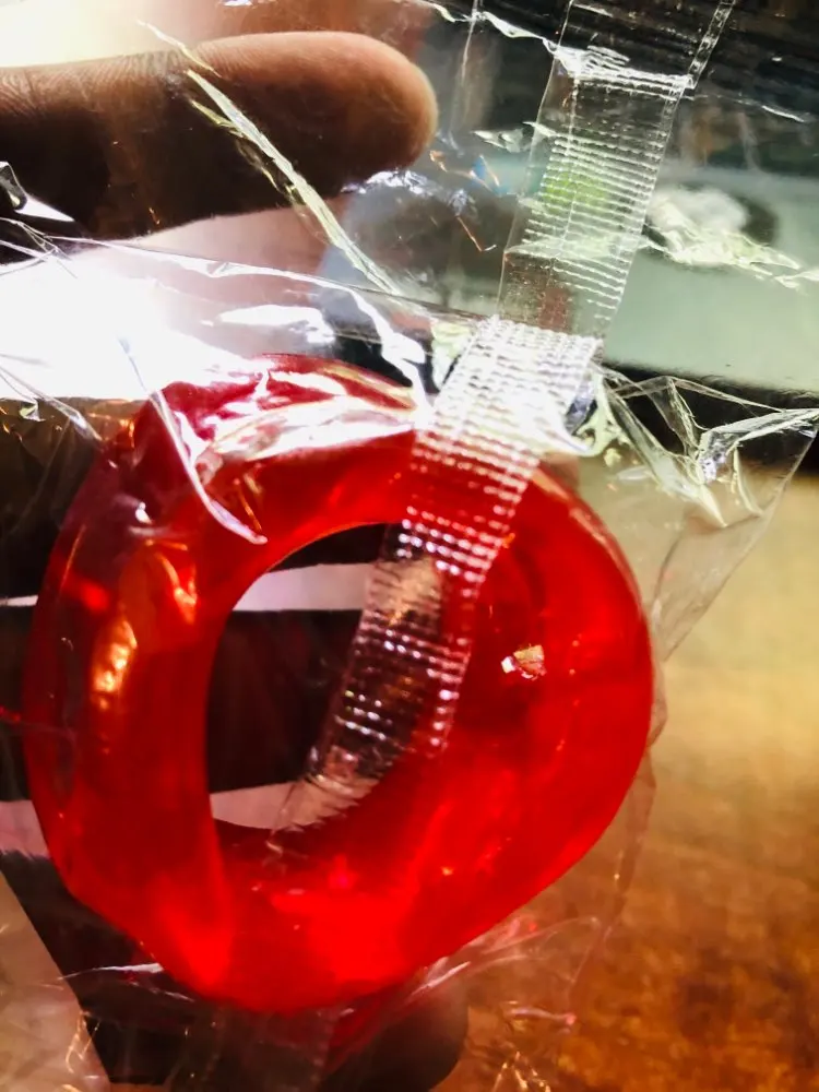 Кольцо очень хорошо тянется. Мне было норм. Материал не пахнет. На фото более блестящий чем вживую, но вот вообще пофиг.