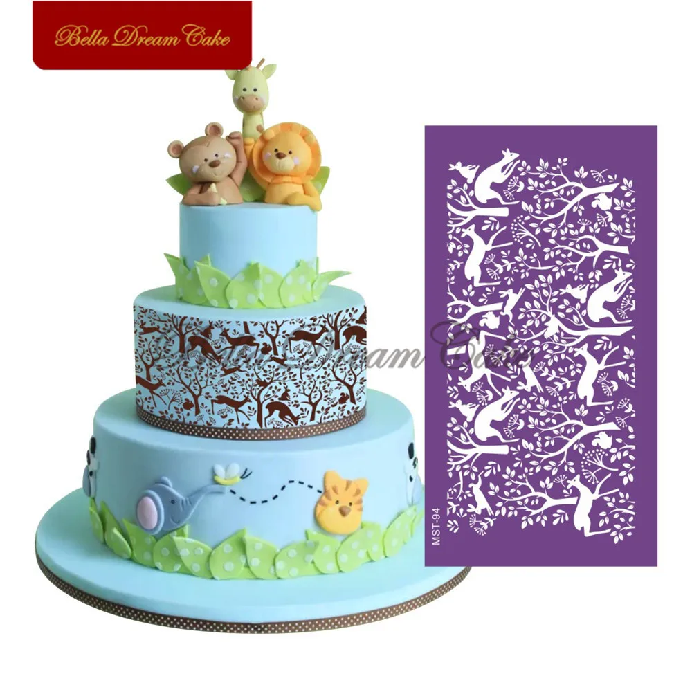 Джунгли животных Лев Слон сетчатый трафарет помадка кружево Форма т...