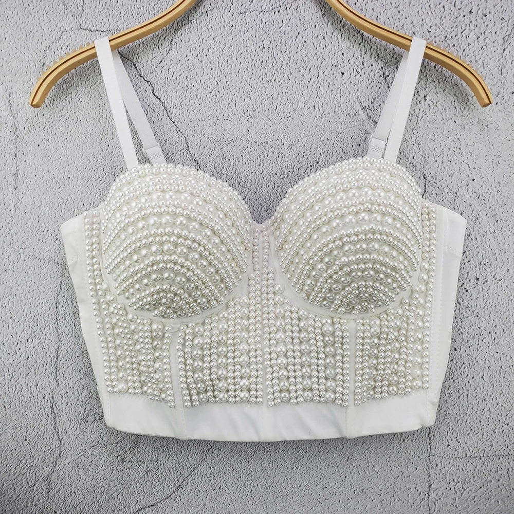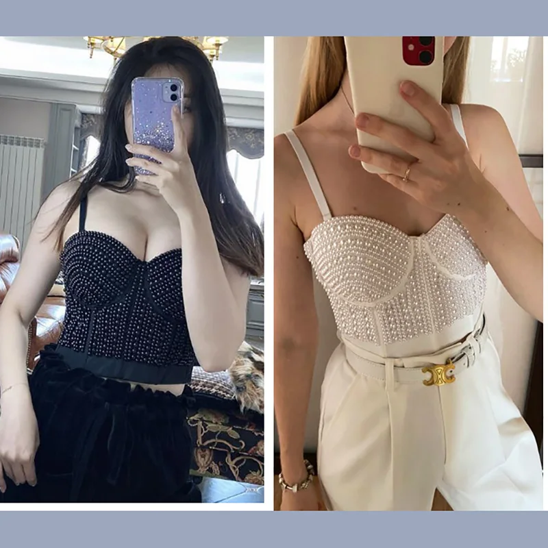 Женский корсет Atoshare, черный топ с жемчугом, стразы, пуш-ап, топ-бюстье, праздничная одежда, топ на бретелях для ночного клуба