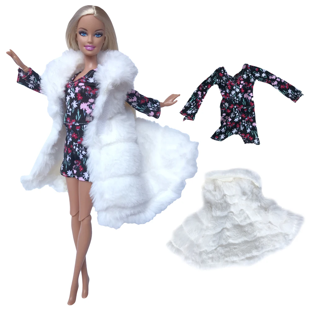 NK 1x микс Кукольное пальто зимнее Фланелевое пальто меховой халат платье Одежда для куклы Барби аксессуары ЛОТ цветной наряд L3 JJ