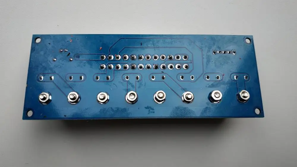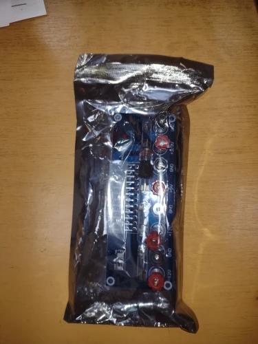 Доставка 18 дней, трек отслеживался на всем пути. Товар пришел в запаянном пакете, без повреждений. Качество модуля плохое. Много несмытого флюса, есть отпечатки пальцев, грязь, капли припоя. Очень узкие площадки под гайки, возможно перетирание покрытия и кз. Для предотвращения можно использовать пластиковые шайбы подходящего диаметра. Зажимы не подходят под бананы. Сам модуль работает исправно, распиновка правильная. Снижаю оценку за качество исполнения.