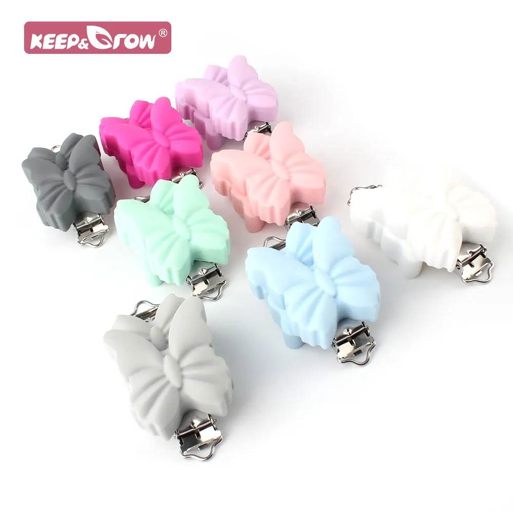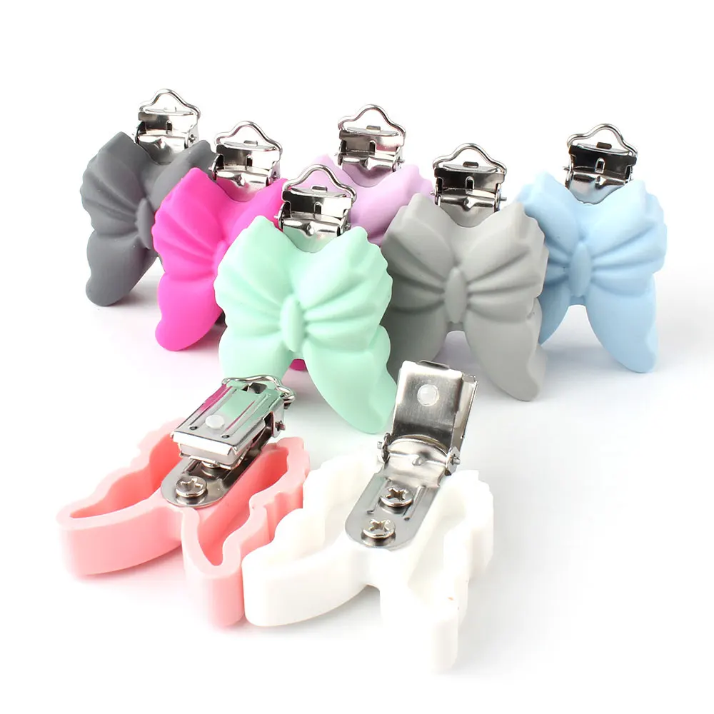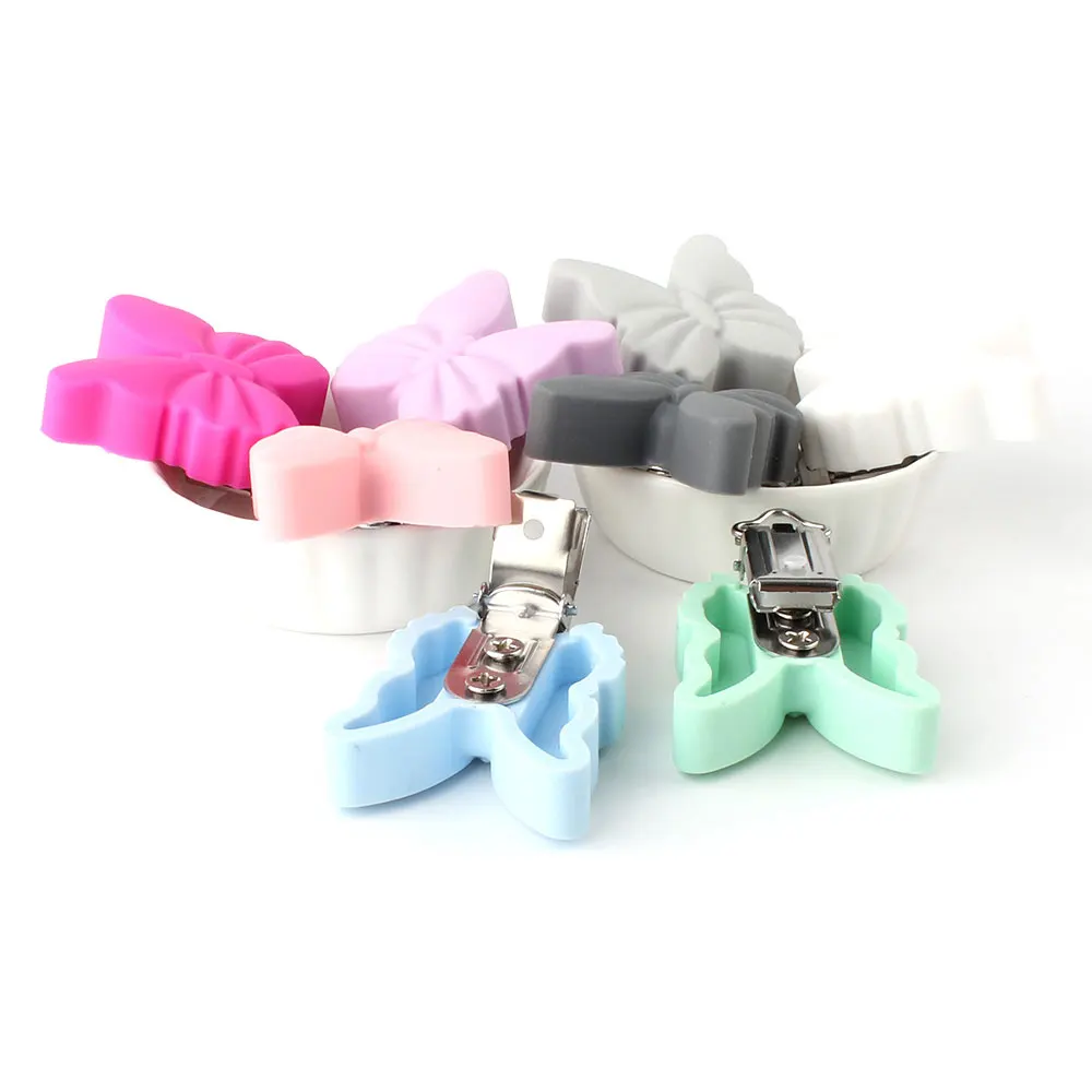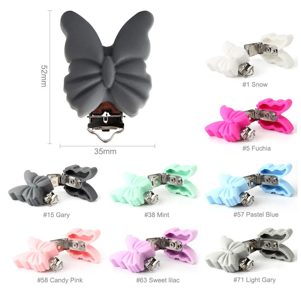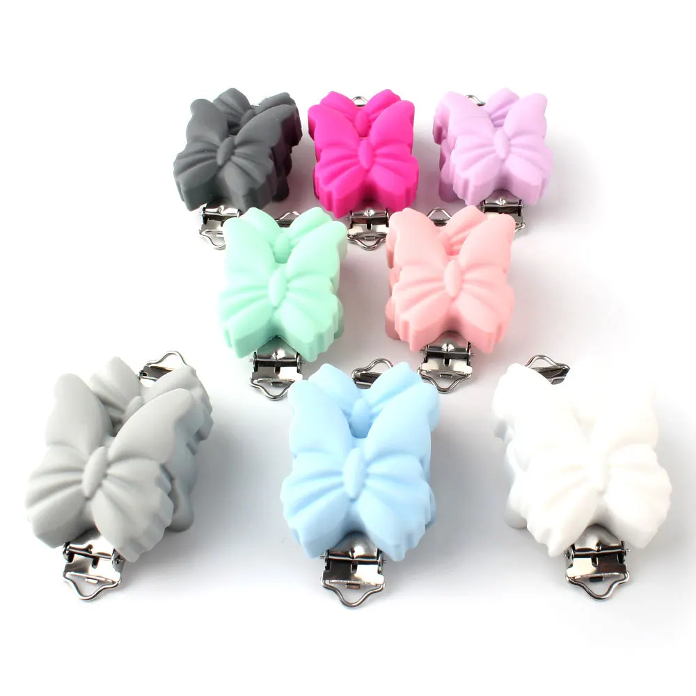 15 шт. в форме бабочки, Детские зажимы для соски, пищевой прорезыватель, бусины, аксессуары, держатель для соски-пустышки DIY, зажим с подвеской для прорезывания зубов