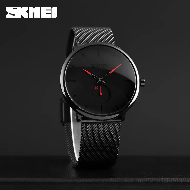 SKMEI простые ультра тонкие модные мужские часы кварцевые часы мужс...