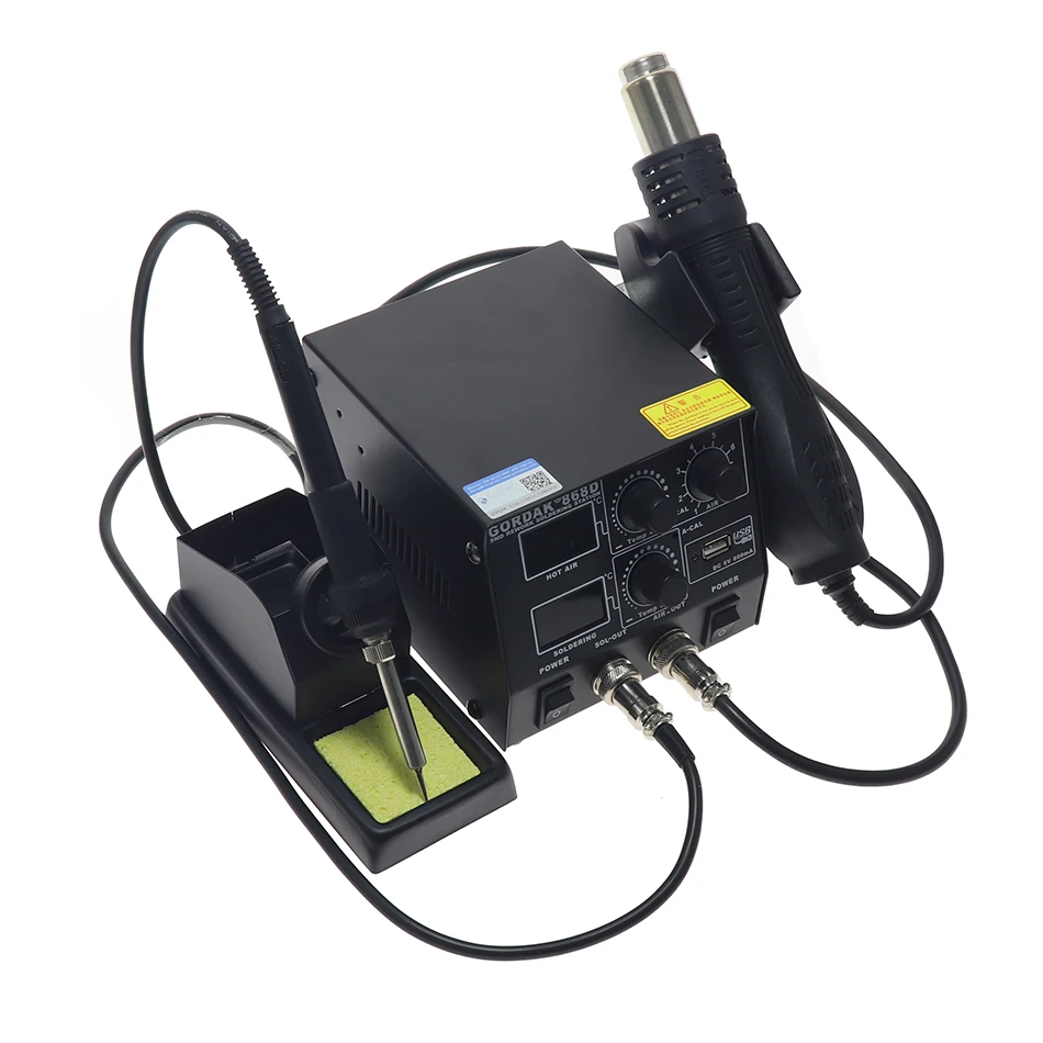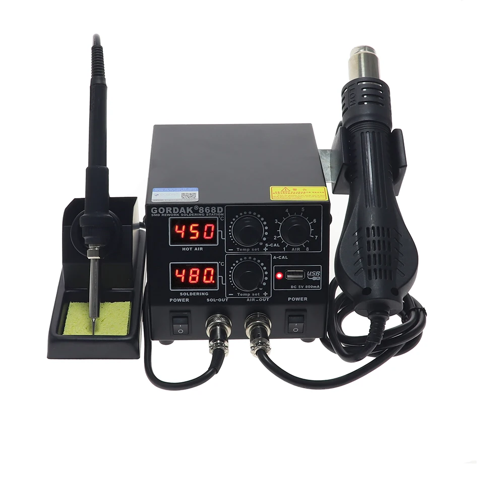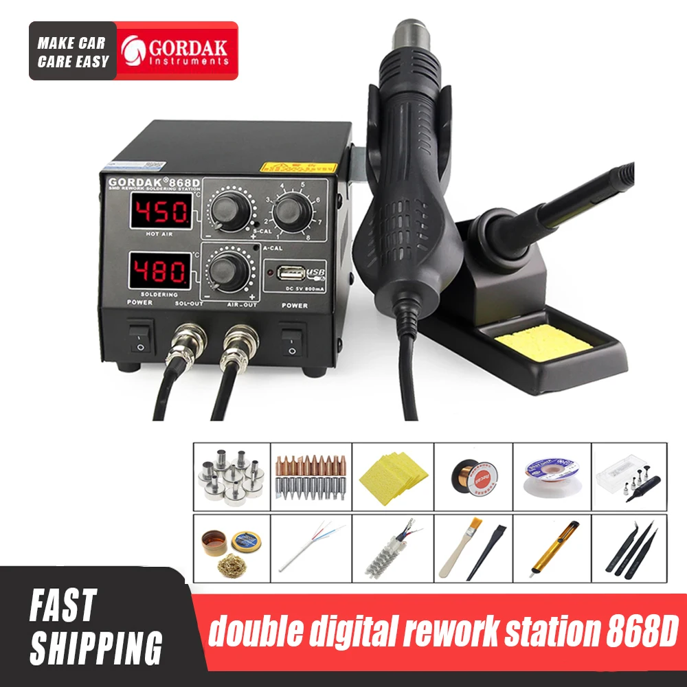 GORDAK 868D Интеллектуальный 3-в-1 антистатический Двойной Цифровой Пистолет горячего воздуха паяльная станция USB 8582D