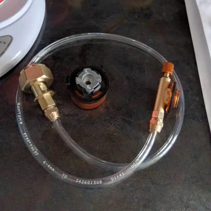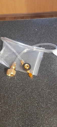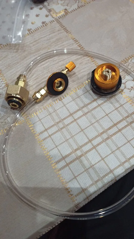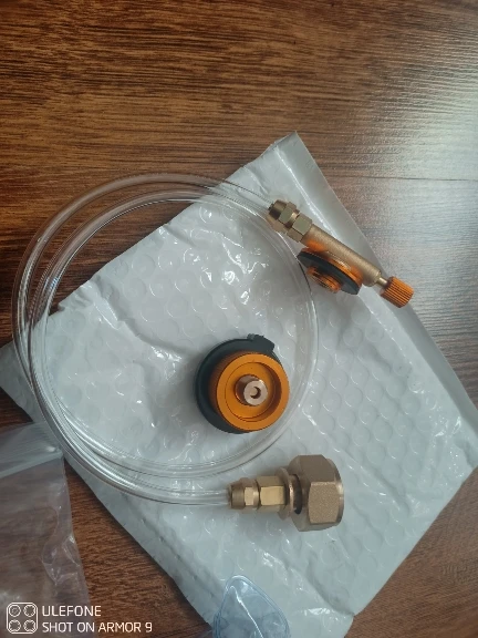 Item has arrived as described. I kindly advise the seller to add valves for other types gas canisters as well. I needed to buy a separate valve between this hose and gas canister sold in my country. Now the system is ready to fill. Also I wish the connectors of the adapter (yellowish colored one in the picture) had a little bit more juice at the connection points to grasp the gas canister more firmly. Anyway it does its job perfectly, so I give 5 stars.