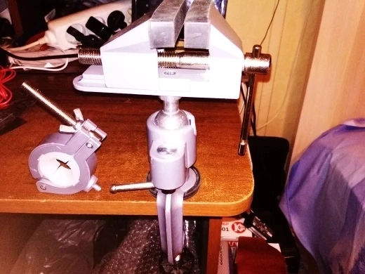 Сделано всё из алюминиевого сплава, для держателя дремеля норм, а вот для тисков не очень. Винт стальной, губки тисков алюминиевые, в общем не очень хорошо.