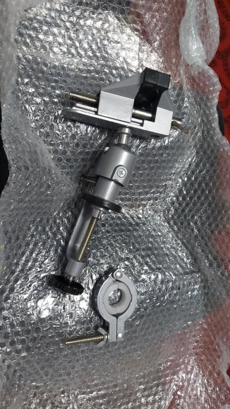 Качество низкое, как и ожидалось. Тиски не могут быть заменены зажимом сверла, потому что резьбовые контакты тиски блокируют доступ к болту, удерживая тиски к шаровому шарниру.