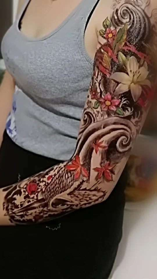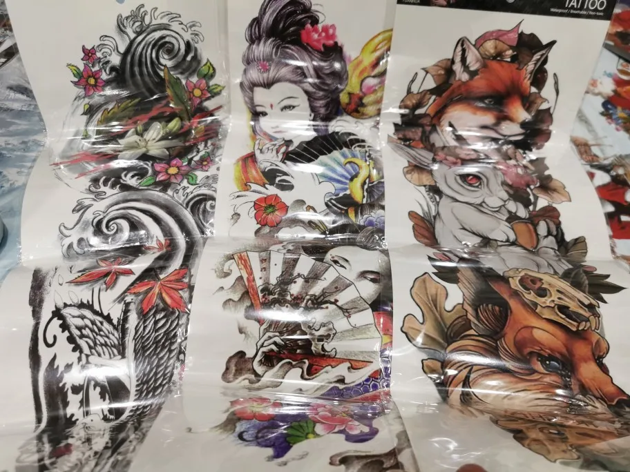 Водные переводные татуировки наклейки традиционная Большой татуировки рукава японская волнистая Водонепроницаемый временная татуировка стикер Лилия "Павлин", Мужская Закрытая Кепка Тигр лиса тату боди-арт для женщин
