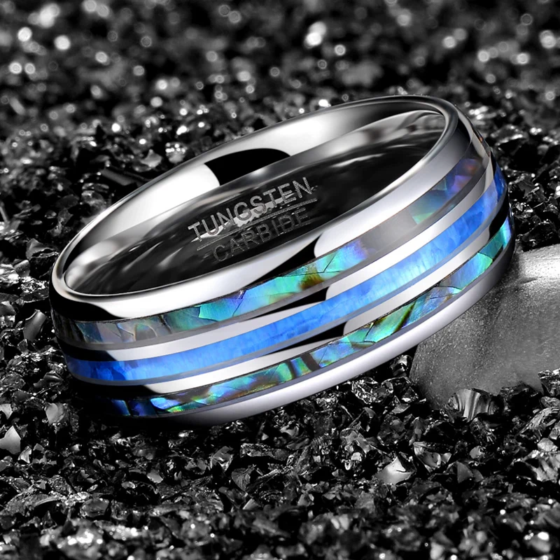 Металл: вольфрамШирина: 8 ммДизайн: натуральная оболочка и Синий огненный опал инкрустацияПовод: помолвка/Свадьба/Вечерние/юбилейПодходит для: женщин, мужчин. Подарки для пар, влюбленных. Размер s в наличии (американский размер): 8 / 9 / 10 / 11 / 12 / 13 Вольфрам стал популярным как ювелирный материал из-за высокой стойкости к царапинам и может сохранить свой блеск навсегда.