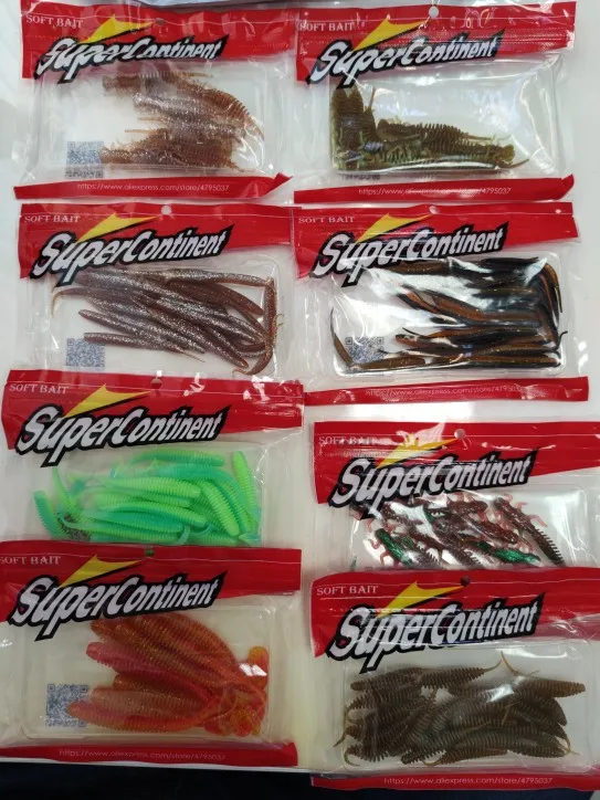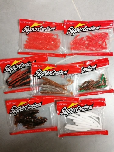 Пришло через 15 дней, очень быстро. Описанию соответствует, силикон мягкий и прочный, некоторые цвета чуть темнее, чем на фото, но не критично. Количество в пачках не считал, но вроде соответствует. Легкий запах рыбьего аттрактанта. Продавцу спасибо - оперативно, качественно, рекомендую.