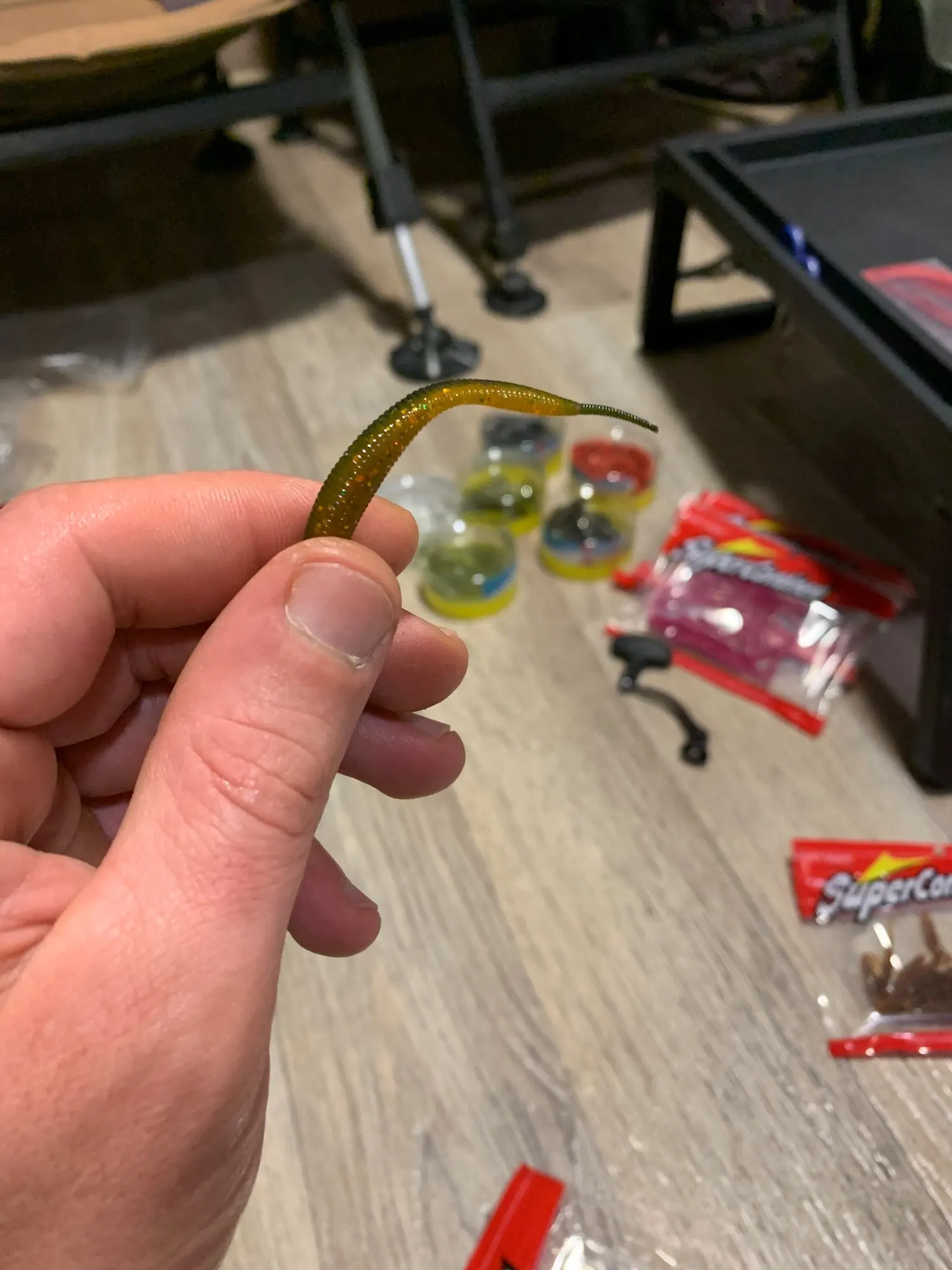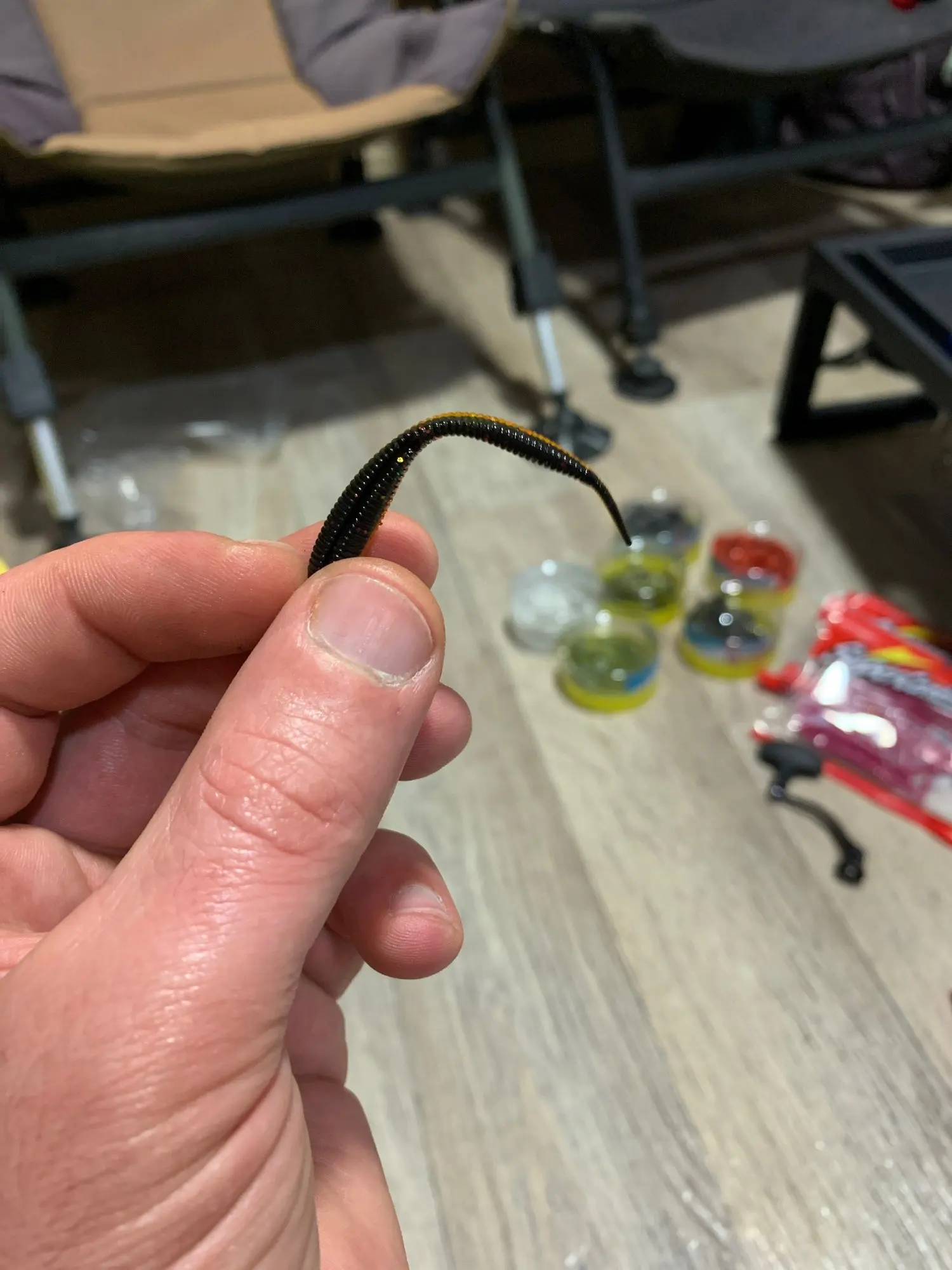 Вот этот червяк тоньше по факту, просто как две спички, но сделано хорошо, запах, пропитка на высоте, посмотрим что покажет на воде))