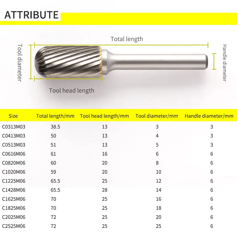 Шлифовальная головка карбидная Вольфрамовая сталь, 1 шт., С-образным пазом, цилиндрическая шаровая Головка, фреза, напильник деревообрабатывающий, вращающийся