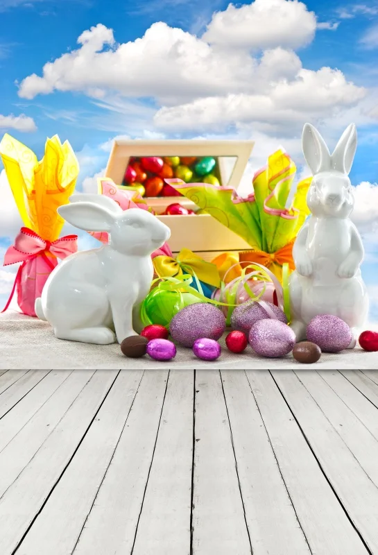 Виниловые фоны Laeacco, Пасхальная корзина, яйца, цветы, серые доски, деревянный пол, фотостудия для детского портрета
