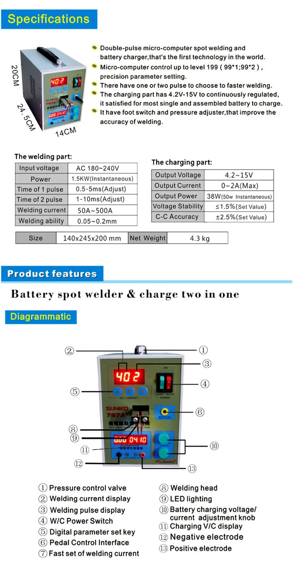 Устройство для точечной сварки SUNKKO S787A + 18650